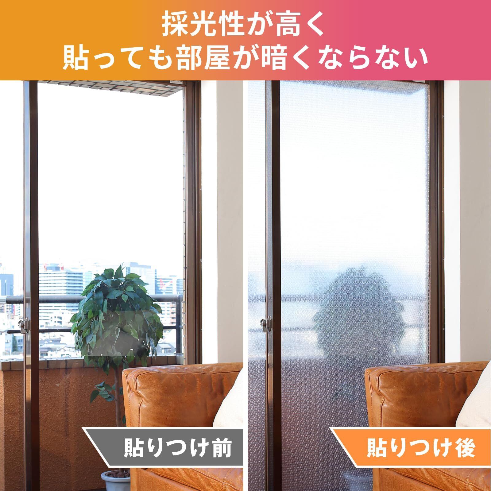 「特殊な粘着剤が付いているため、特別な工具や工程は不要。気軽に貼りつけることで、家中の窓を一瞬で断熱効果のある環境へと変えます。結露防止にも優れています。」