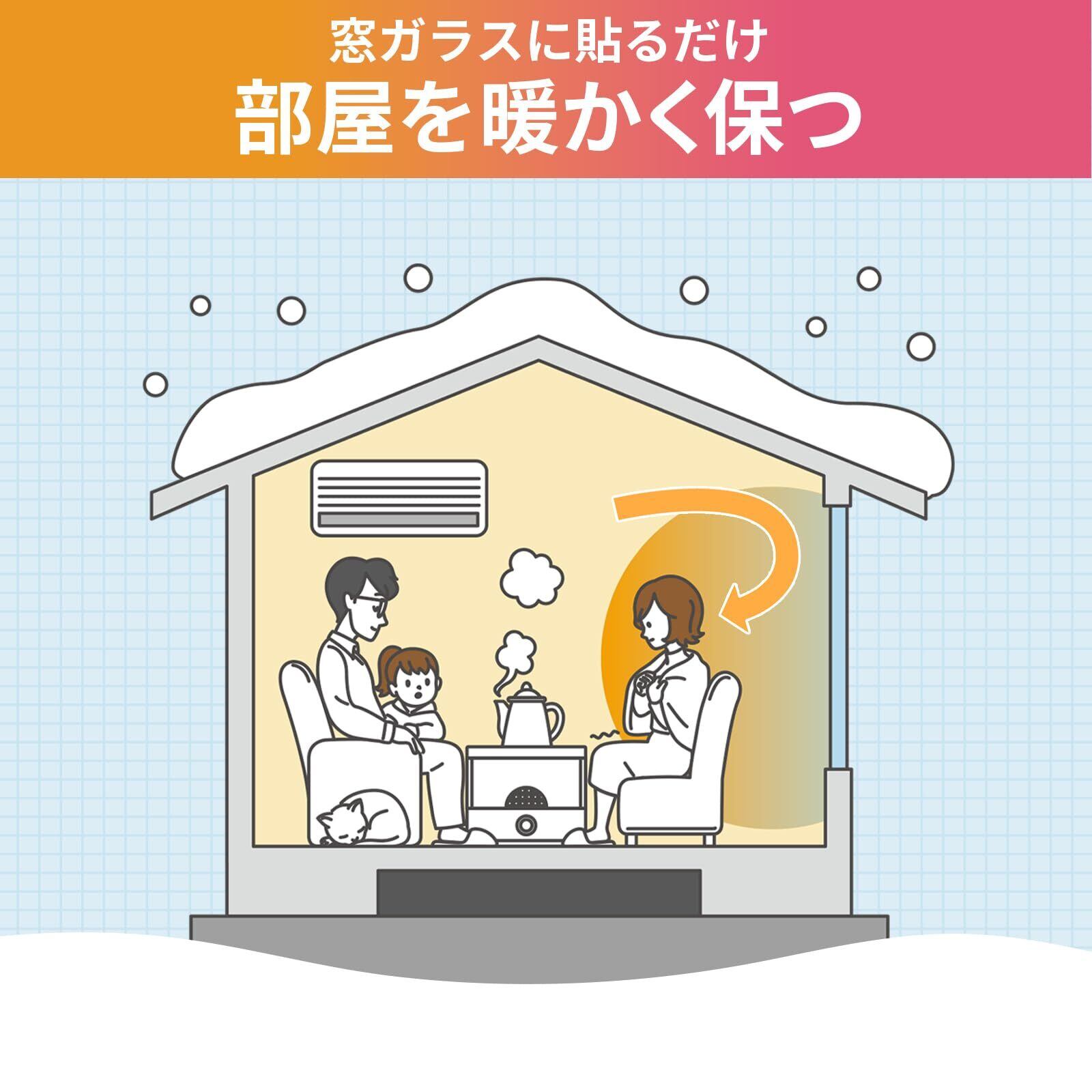 「このシートは多孔質のフォーム素材を使用しており、外気の冷たさを遮断。リビングや寝室などの居住空間を快適に保ち、一年中快適さを実感できます。特に冬場の暖房効率を高めるのに役立ちます。」