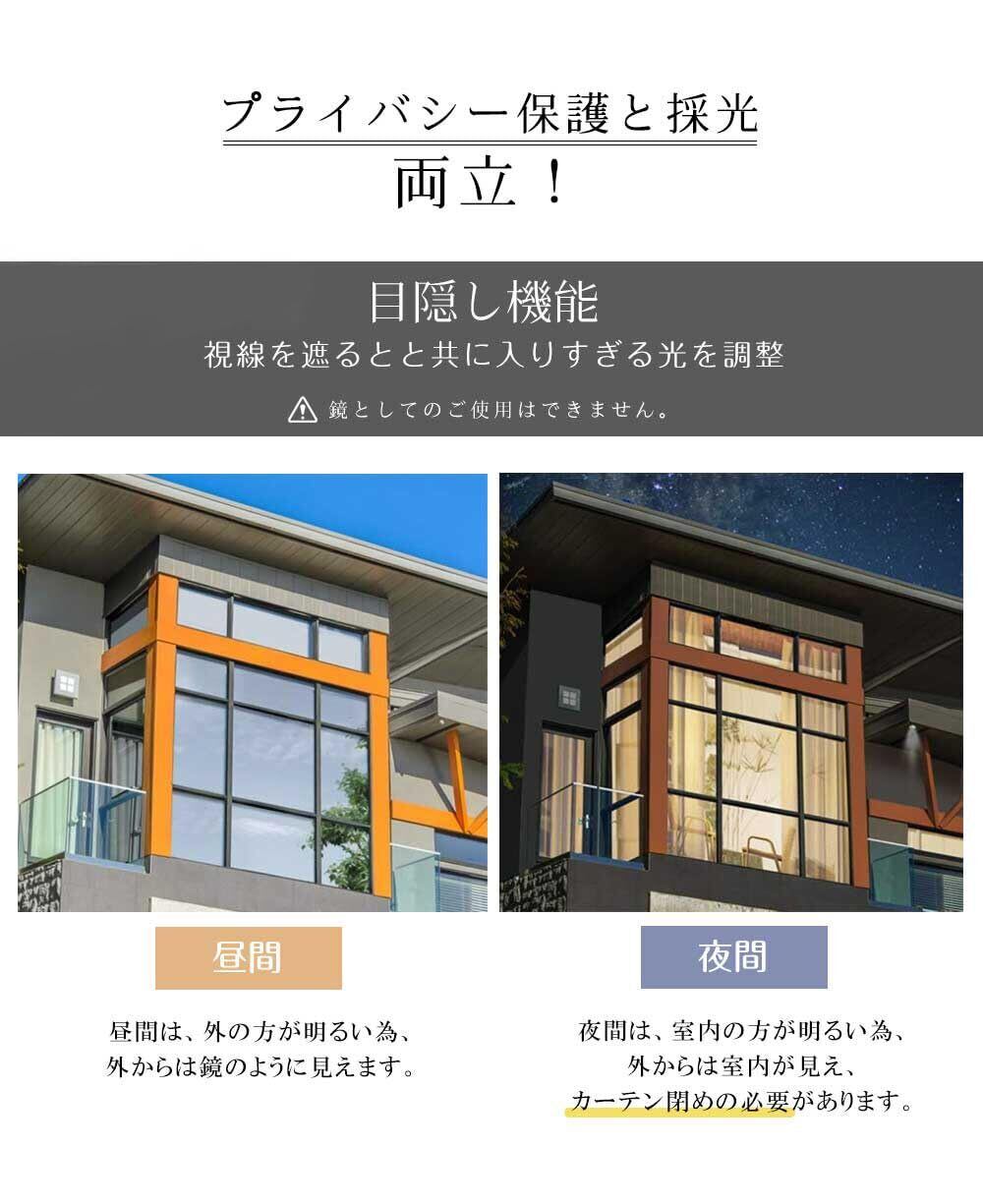 【目隠し効果・プライバシー保護】外からの視線を遮ることができ、室内のプライバシーを保護します。 可視光線透過率が54%と高いため、室内の明るさを維持しつつ、目隠し効果を実現します。道路や隣家に面した窓、マンションの低層階、店舗のショーウィンドウなど、プライバシーを気にする日常のシーンでも快適に活用できます。