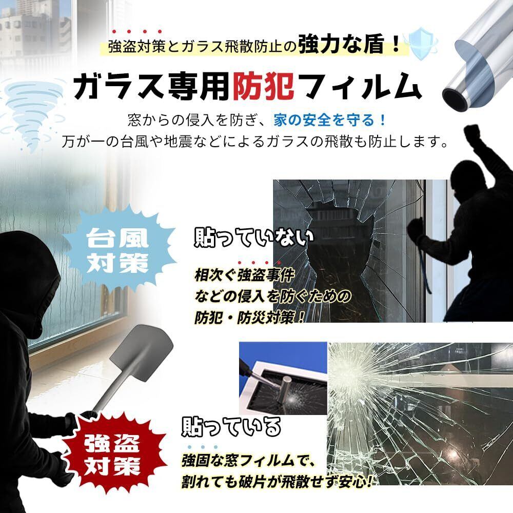 「窓ガラスの飛散を防ぎ、万が一の事故に備える防犯フィルムとしても優れた性能を発揮。安全な住環境を提供します。」
