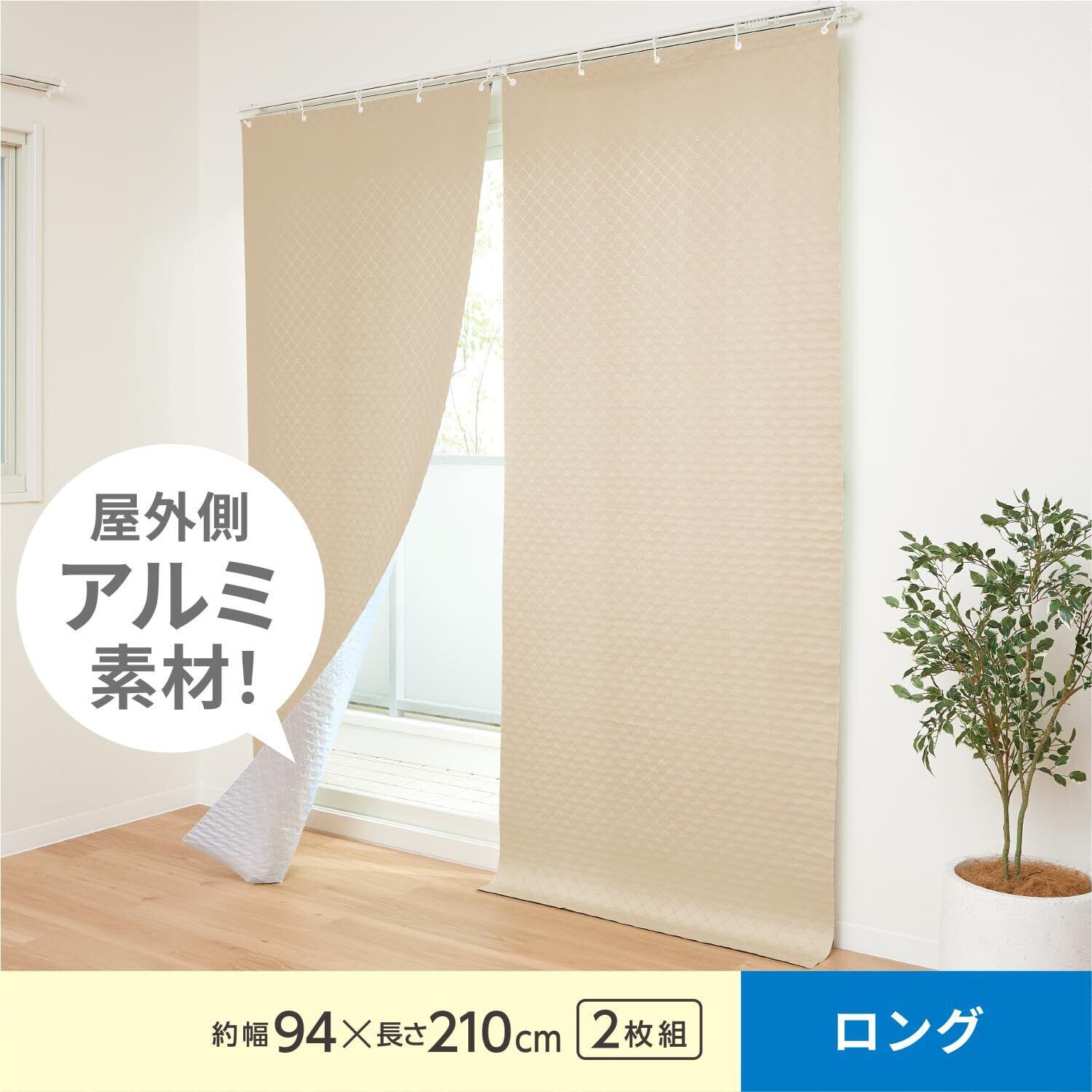 匂いの少ないPEVAとPETアルミシートの2重構造!S字フックでカーテンレールに吊るすだけ。