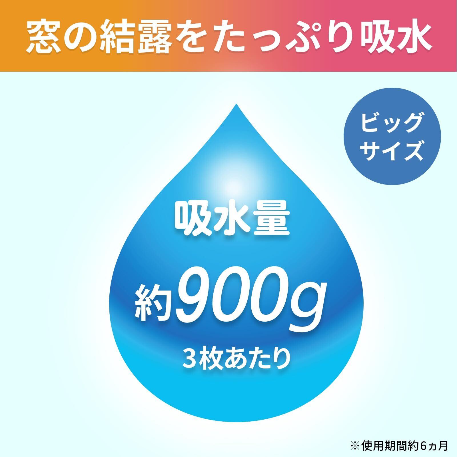 ・貼るだけで窓ガラスの結露を吸水し、壁・床の腐食やカーペットの汚れ・カビを防止!給水量は約300g(1枚あたり)