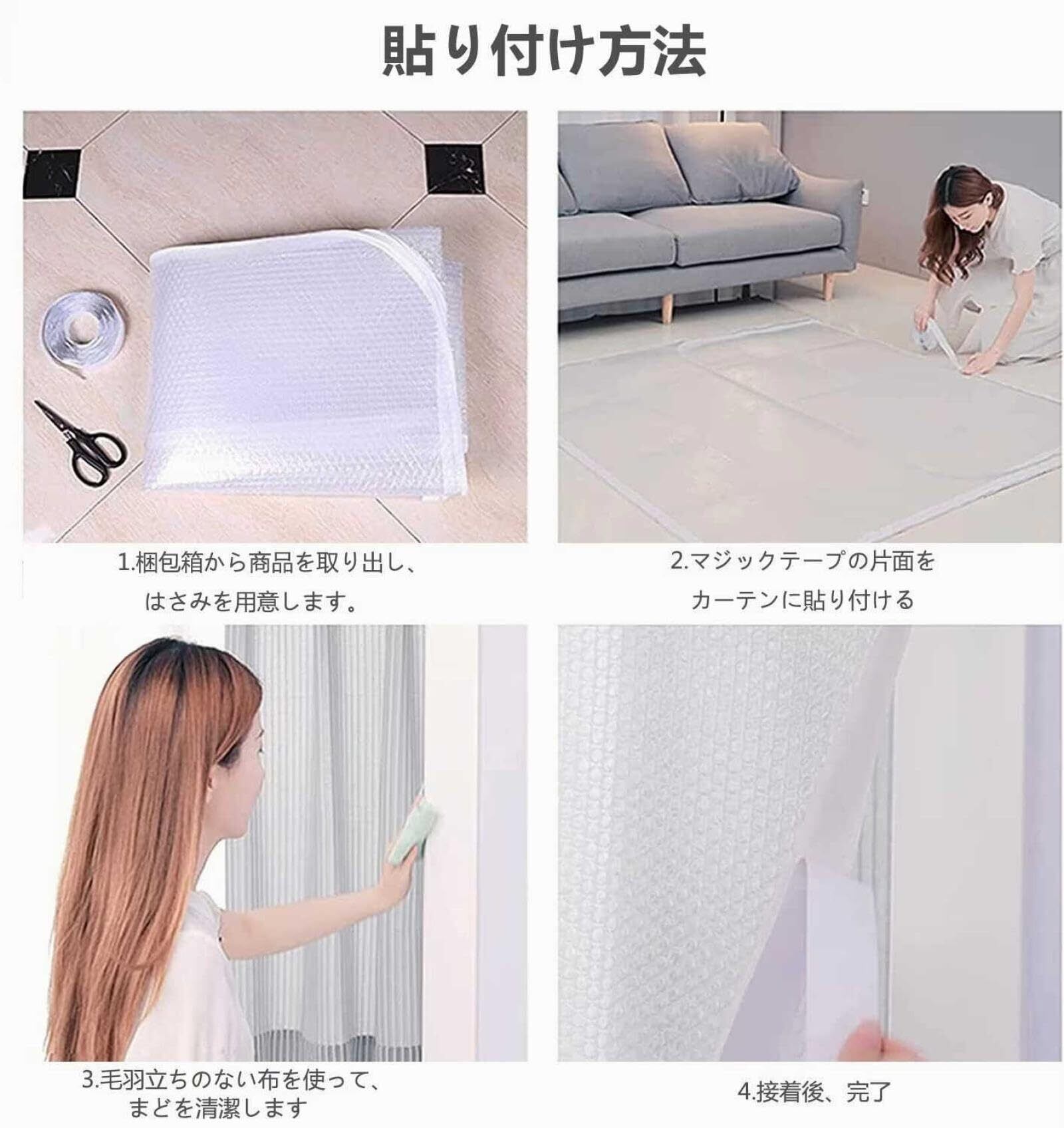追加の自己粘着デザインにより、サーマルカーテンはドア/窓にしっかりとくっつきます。不要になった場合は簡単に削除できます。 (注: ウィンドウ フィルムは、金属フレームと塗装された木製フレームに貼り付けることができます。貼り付ける表面は、きれいで、平らで、滑らかで、塗料やほこりがない必要があります。)