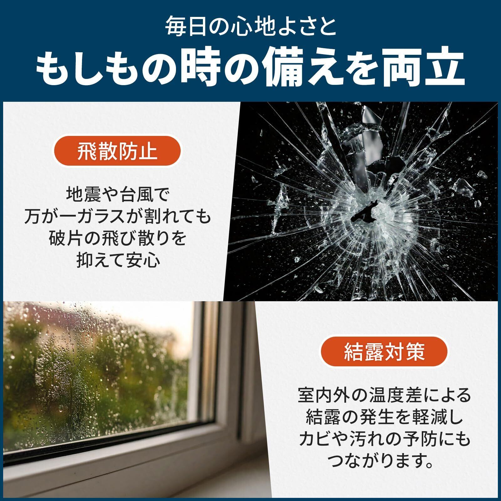 【地震や台風に備える飛散防止構造】突然の衝撃でガラスが割れても、破片の飛び散りを抑える構造で安心感アップ。地震や台風など万が一の備えとしても役立ちます。普段は見えない安全対策として、目立たないけれど頼れる一枚です。