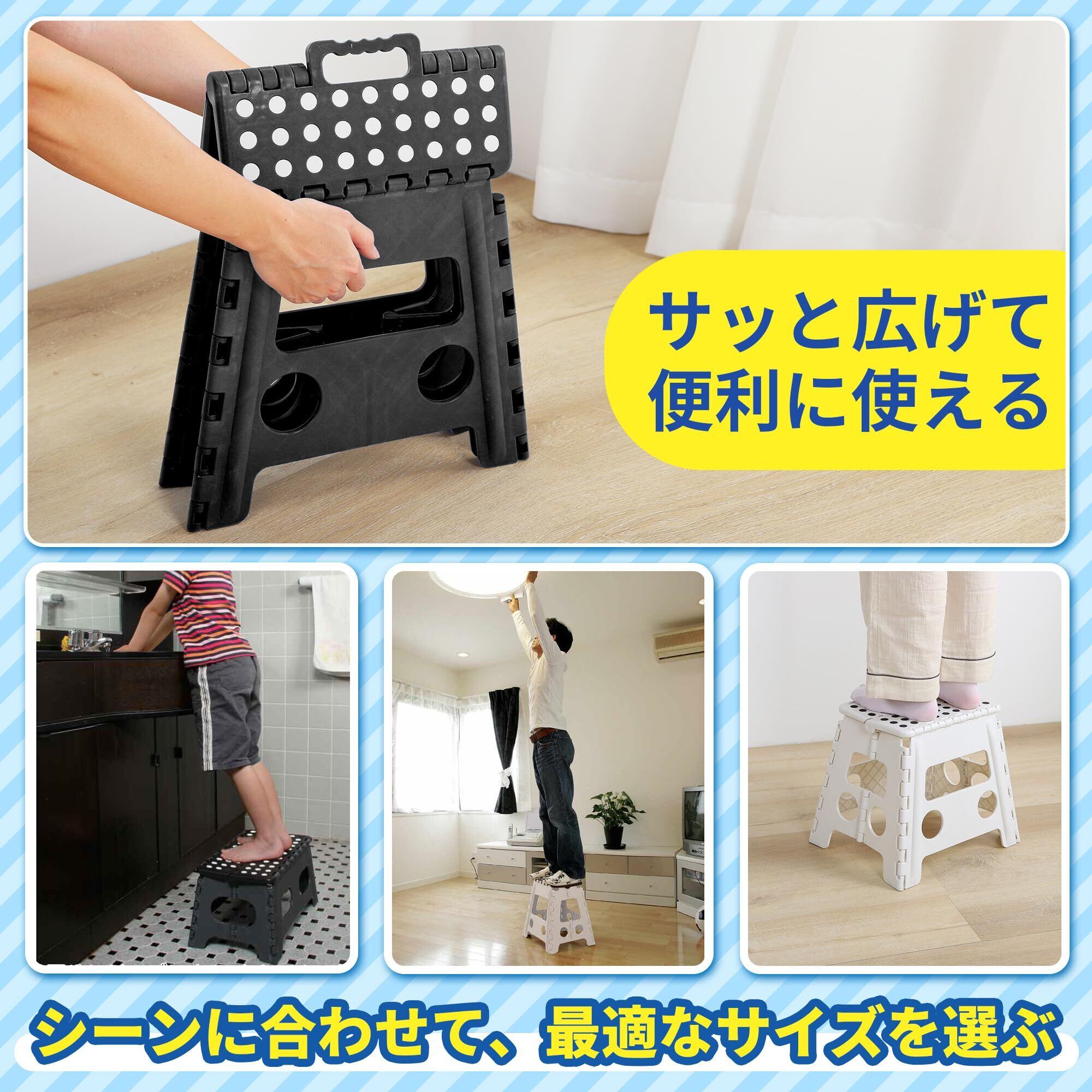 「この踏み台は、洗車や家具の上の物を取る際、キッチンでのちょっとしたステップ、車への乗り降りなど、様々な用途で活躍します。特に高齢者やお子様にとって、日常生活の中で便利にお使いいただけるアイテムです。」