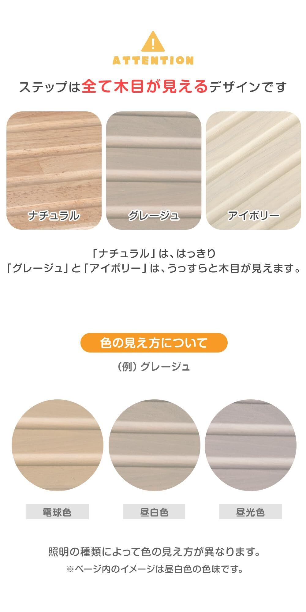 ※木製品につき、多少サイズに誤差が生じることがあります。サイズにつきましては、すべておおよそのサイズとしてご覧ください ※木製品につき、ひとつひとつ風合いが異なります。木目によっては、多少色が違って見える場合があります ※下板のステップ台は、必ずステップの出幅が短い方を前側に取り付けてください。反対に取り付けると転倒する恐れがございます。 ※塗装剥げや変色する恐れがありますので、アルコールを使用したお手入れは避けてください。 ※2022年12月23日より、上段の高さ調節数、デザインをリニューアルしました。 ※2023年11月28日より、傷防止フェルトを傷防止&滑り止めシートにリニューアルしました※2024年1月10日より、水性塗装からラッカー塗装に仕様変更しました。