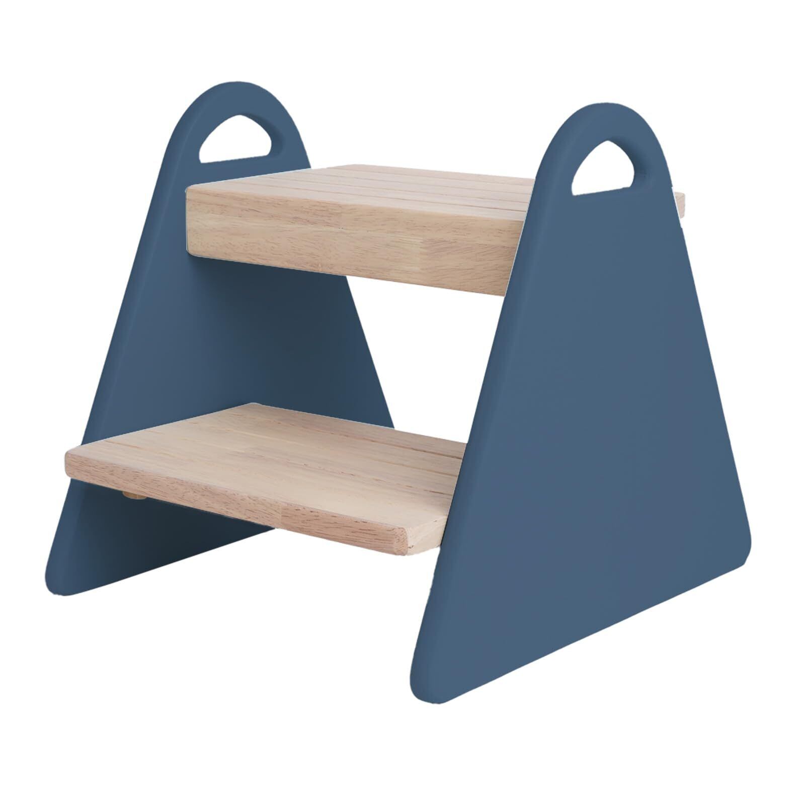 [MKD.] 【子供の自主性を育てる】 踏み台 キッズステップ 2段 木製 天然木 子供用 北欧 おしゃれ シンプル お手伝い 洗面所 キッチン トイレ 滑り止め キズ防止 幅30 奥行32.5 高さ30 (インクブルー)
