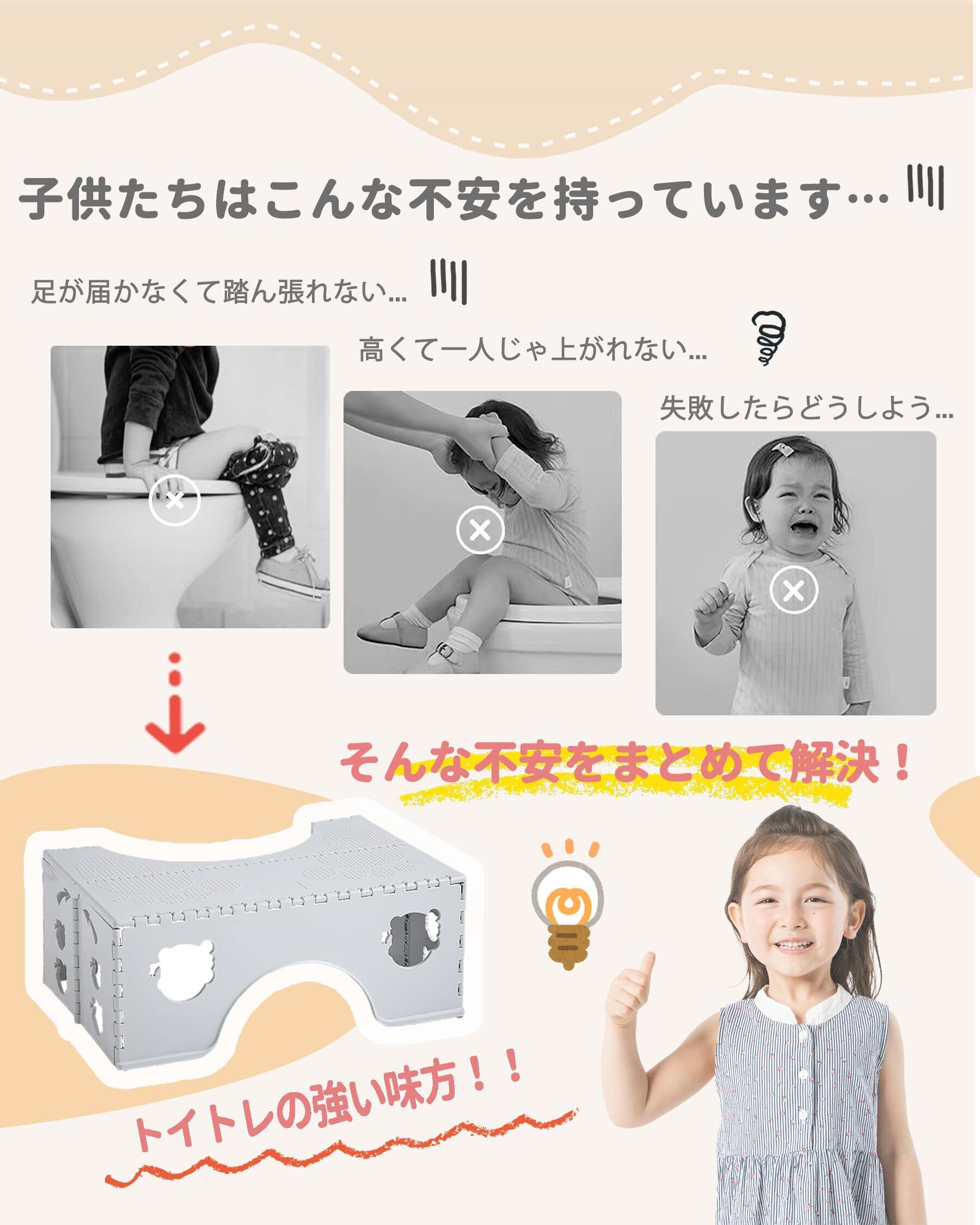 「18cmの高さ設計は、お子様が無理なく使える大きさで、角が丸められたデザインにより事故のリスクも低減されています。自分でトイレに行く自立心を育む、お子様に優しい商品です。」