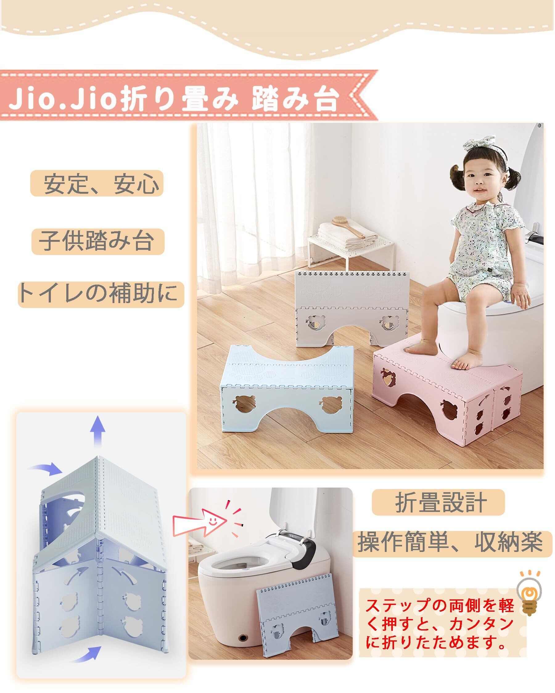 トイレ踏み台 折り畳み 高さ18cm 子供トイレトレーニング 補助便座 ステップ ベビー用踏み台 足置き台 大人から子供まで向け 多機能 持ち運び 収納便利 (グレー) 【Jio.Jio】