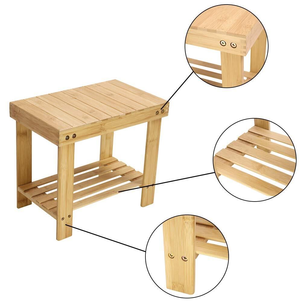 KKTONER 竹製踏み台 物置棚 収納スツール 靴収納 玄関小物 浴室バースルームフットスツール 玄関ベンチ シューズラック ナチュラル(自然色)