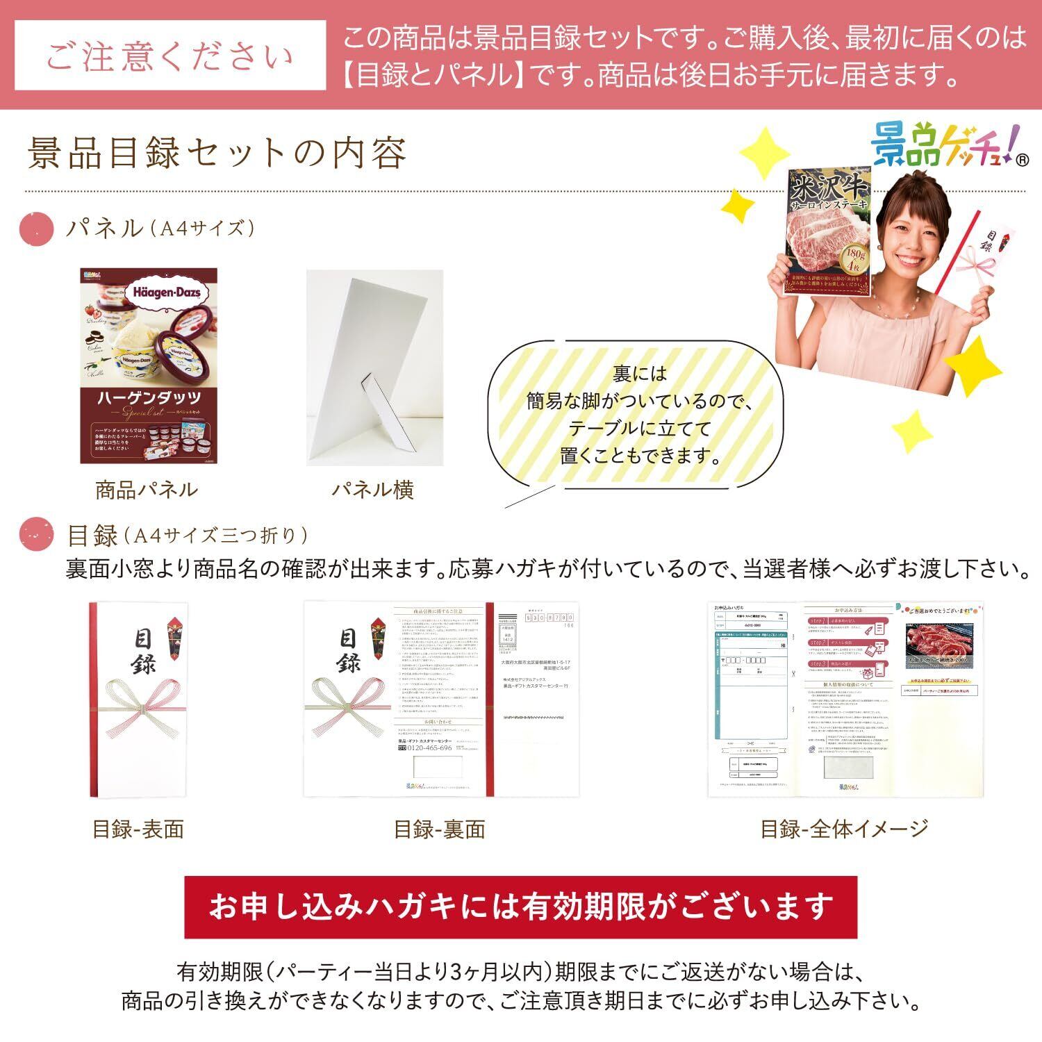 お届け内容:目録ハガキ(引換券) / 景品発表 A4パネル / 商品一覧表 / 個人情報保護シール ※当商品は目録をお届けし、後日指定場所へ商品を発送します。