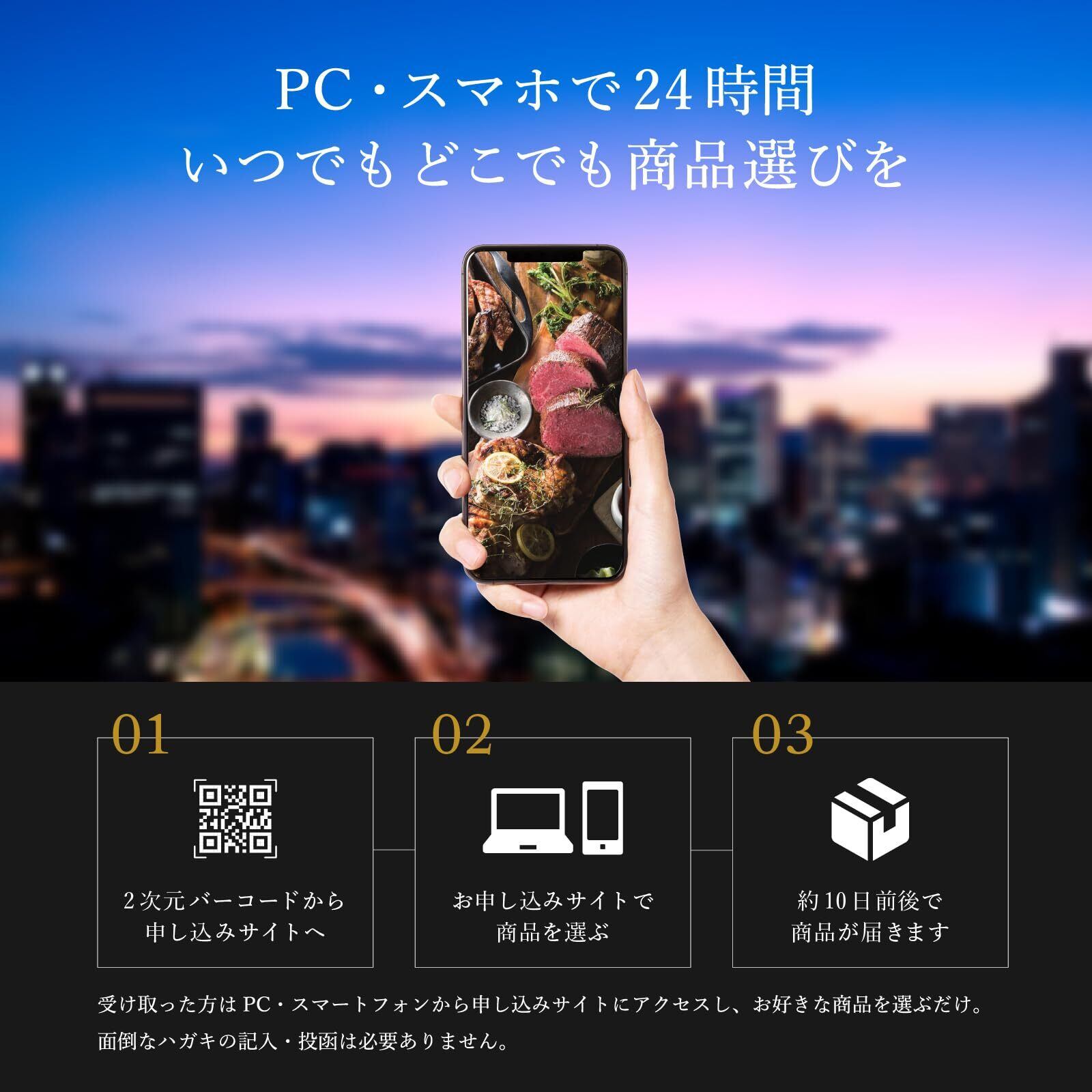 「贈る側も受け取る側も安心して楽しめるギフト体験を提供します。受取人はカタログから自由に商品を選び、簡単に申し込みができる仕組みになっており、手間いらずで素晴らしい贈り物となります!」