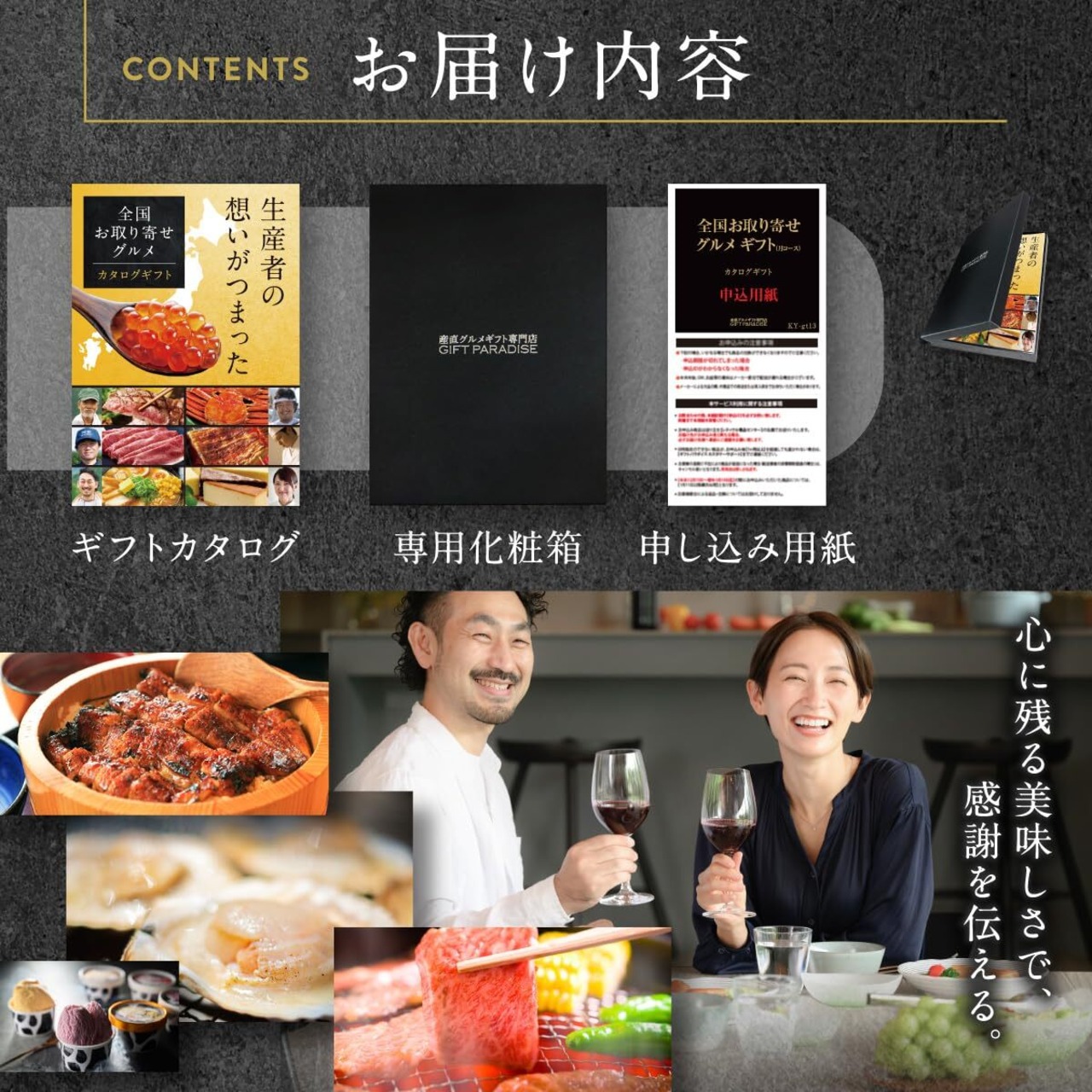 「このカタログは、シンプルな申し込み手順で、手間いらずで美味しい食材を楽しむことができる設計になっています。贈られた方が喜んでいただける、感動が詰まったグルメギフトであることは間違いありません!」