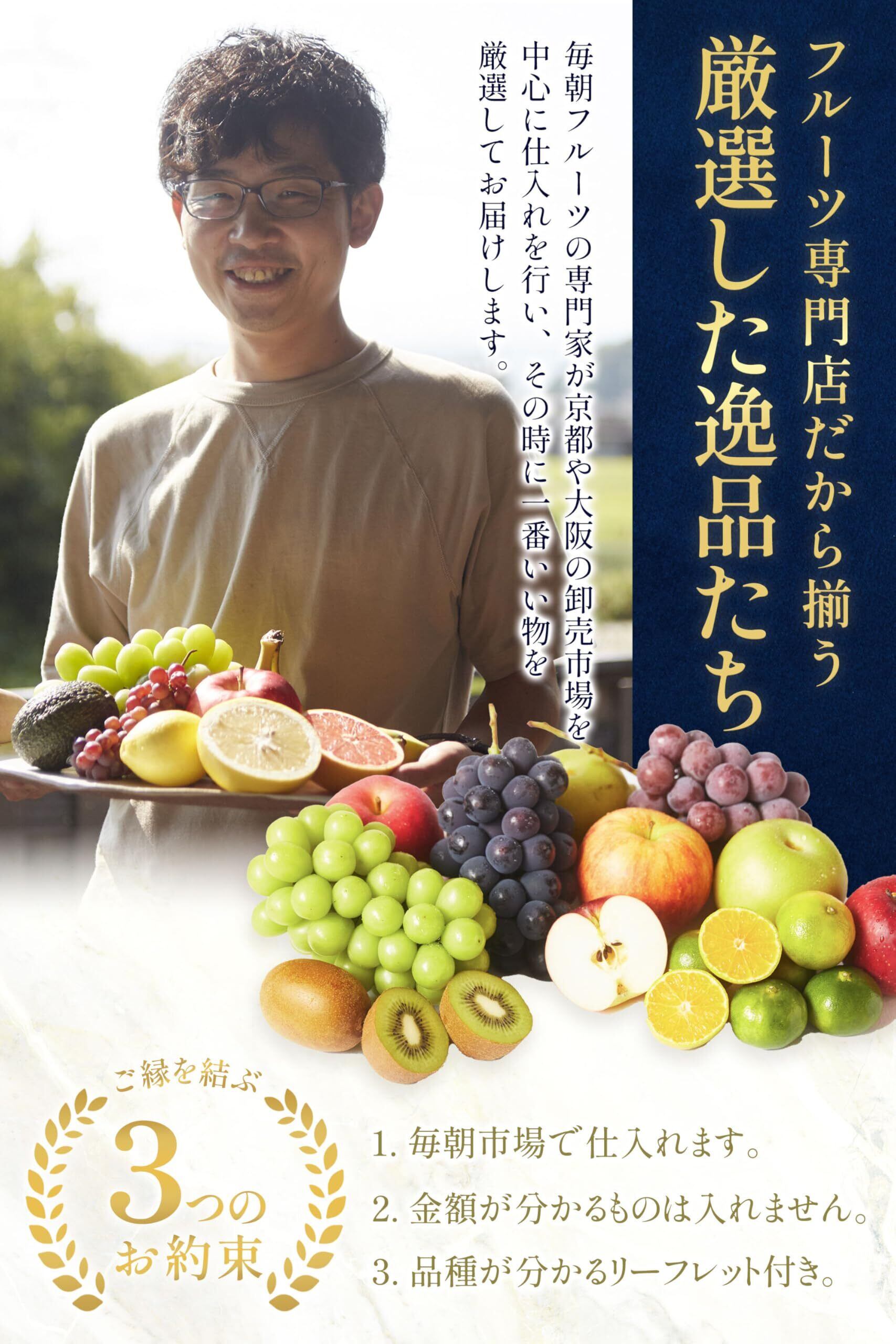 【フルーツコンシェルジュ】 元百貨店の仕入れ担当だった店主が毎朝市場で厳選して仕入れています。 フルーツコンシェルジュでもある店主が選んだフルーツは、旬のおいしい果物ばかり。 目にも鮮やかな彩り、豊かな香り、とろけるような味わいを詰め合わせてお届けする、特別なギフトカタログです。