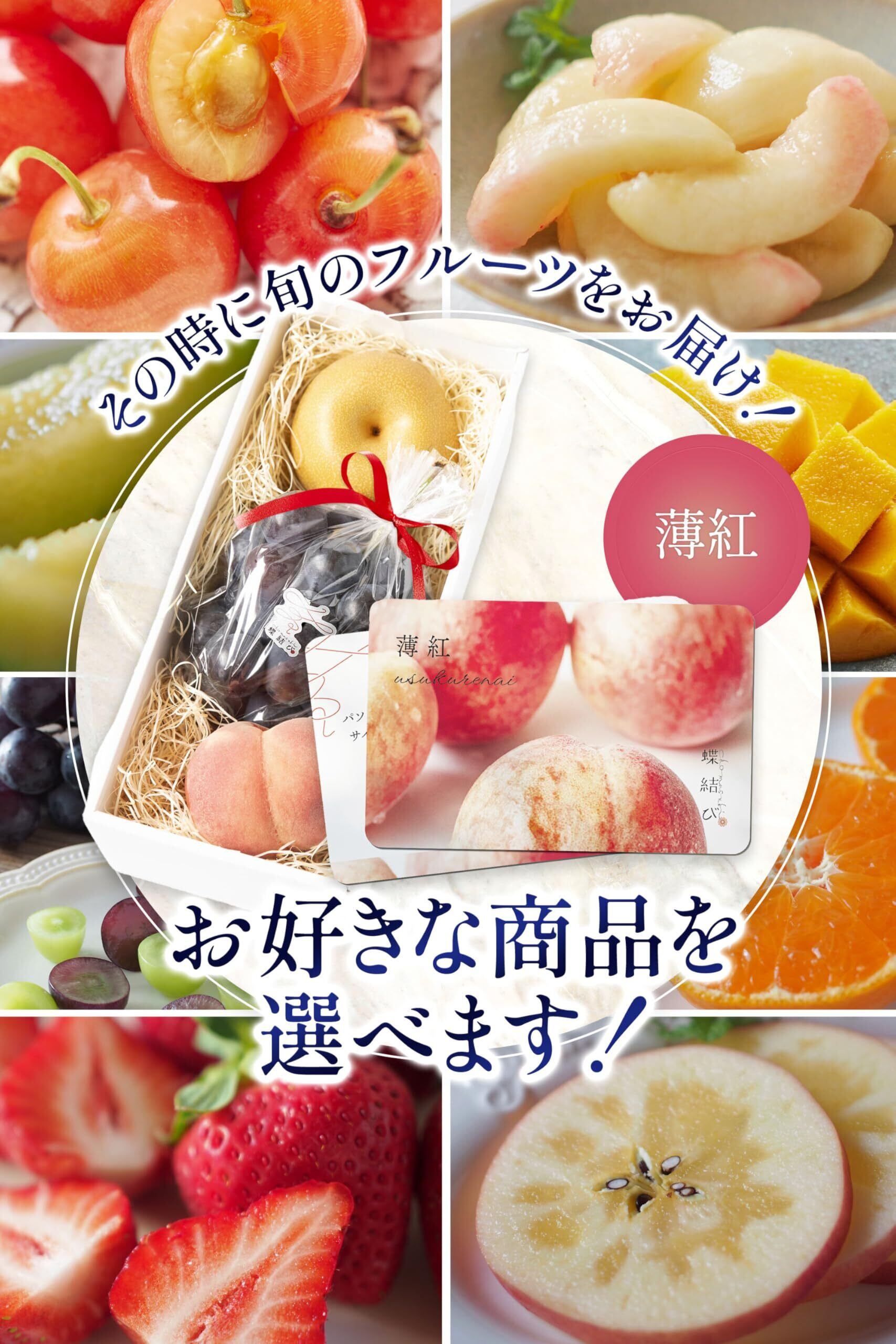 **\旬の美味を贈る!/ [蝶結び] フルーツギフト カード 果物 ギフト 【フルーツ詰め合わせ!旬のフルーツのカタログギフト】薄紅(Usukurenai)【選りすぐりの果物を楽しむ特別な体験!】**