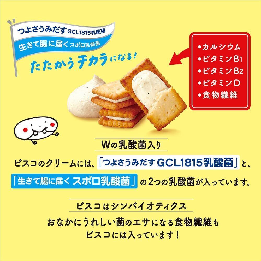 「『ビスコ ミニパック 発酵バター bisco glico』は、発酵バターを使用したクリームがサンドされた、風味豊かなビスケットです。まるで手作りのような深い味わいと、乳酸菌の美味しさが楽しめる贅沢な一品。手軽におやつやティータイムのお供にぴったりで、ひと口食べると幸せな気持ちが広がります!気分転換や小腹が空いたときに、是非味わってみてください。」