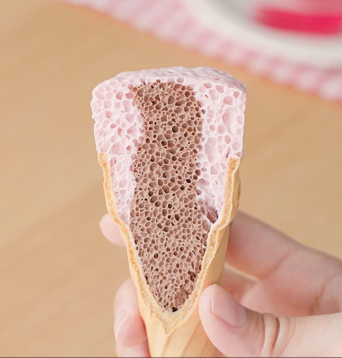 「ふわっとしたエアインチョコといちごの甘酸っぱさが絶妙に絡み合ったこのお菓子で、リラックスしたひとときをお過ごしください。軽やかなおやつで、日々の気分転換にも最適です!」