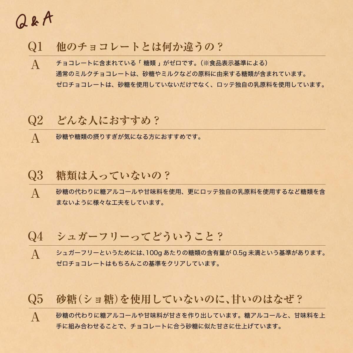 原材料:マルチトール(中国製造、国内製造)、小麦粉、カカオマス、乳等を主要原料とする食品(食物繊維、バター、分離乳たんぱく)、植物油脂、ショートニング、小麦全粒粉、液卵、ラクチトール、ココアバター、食物繊維、ミルクペースト、食塩、乳清ミネラル加工品、バターミルクエキスパウダー、カカオエキス、大豆胚芽エキス/加工でん粉、乳化剤、光沢剤、膨脹剤、増粘剤(アラビアガム)、香料、甘味料(スクラロース、アスパルテーム・L-フェニルアラニン化合物、アセスルファムK)、酸味料、ビタミンP