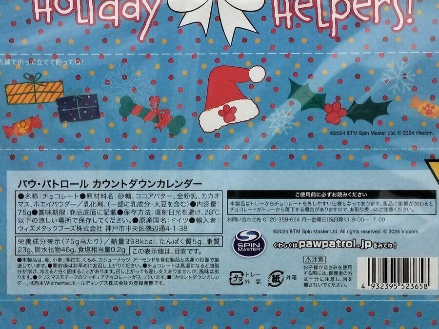 「『カウントダウンカレンダー チョコレート』は、高品質な素材を使用しており、安心してお楽しみいただけるお菓子です。口どけの良いチョコレートとパウ・パトロールの魅力が詰め込まれたこのカレンダーで、心温まるクリスマスをお過ごしください。」