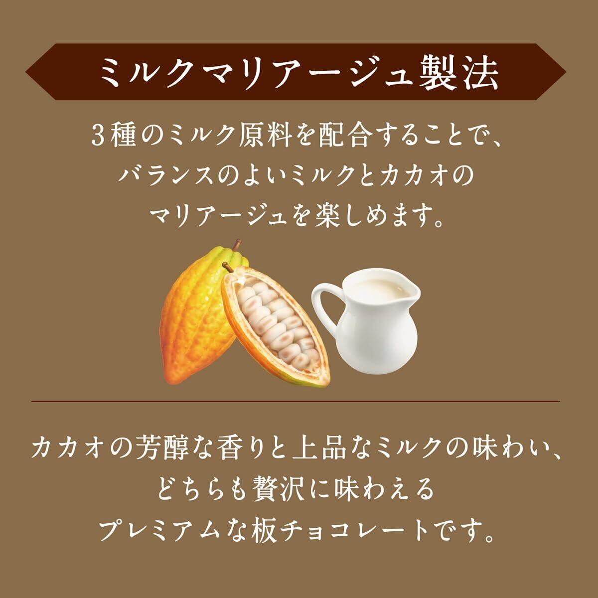 カカオ分を高めたミルクチョコレートに、北海道産生クリームを使用したクリームパウダーを加えることで、カカオの芳醇な香りと上品なミルクの味わいをどちらも楽しめる、プレミアムな板チョコレートに仕上げました。ガーナのとろける口どけとともに広がる、奥深いカカオとコクのあるミルクの贅沢な味わいをご堪能ください。今日一日を頑張るあなたに、贅沢なひとときを。