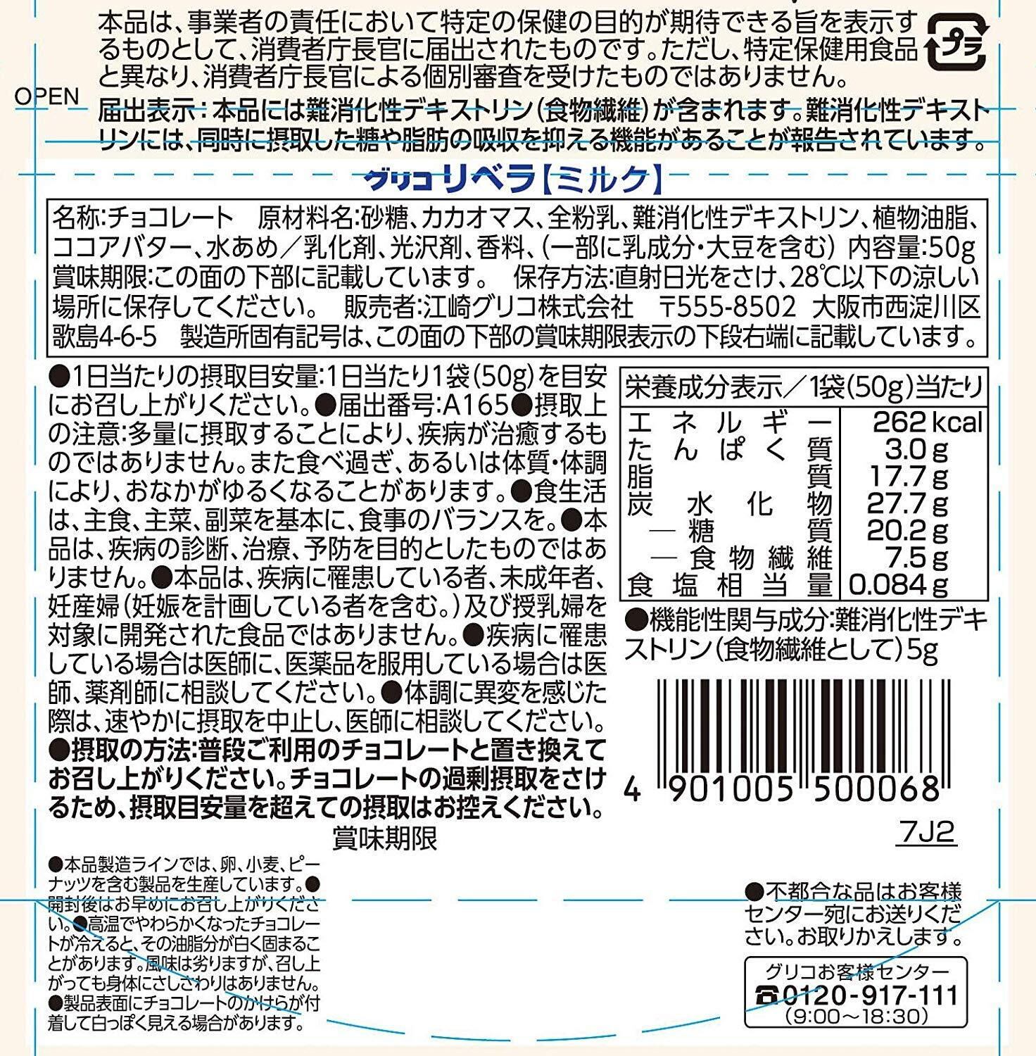 LIBERA(リベラ) ミルク チョコレート 50g×10個 脂肪や糖の吸収を抑える 機能性表示食品 食物繊維 スタイルフリー 江崎グリコ glico