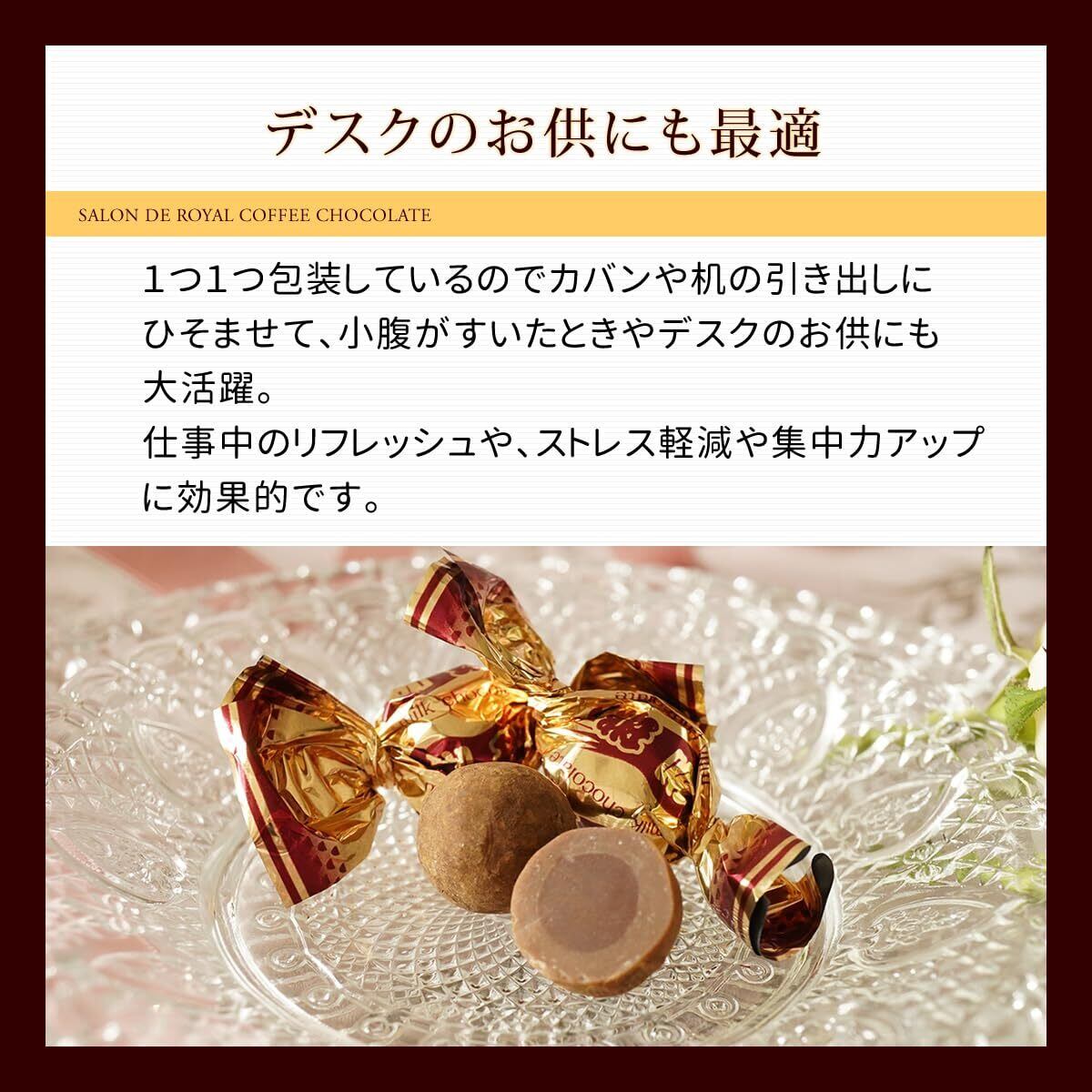 「『チョコレート サロンドロワイヤル 珈琲チョコレート コーヒー』は、厳選された素材を使用し、リッチな味わいを実現しています。普段のおやつや、コーヒータイムのお供として、心を込めたスイーツとしてお楽しみください。思い出に残るひとときを演出します。」