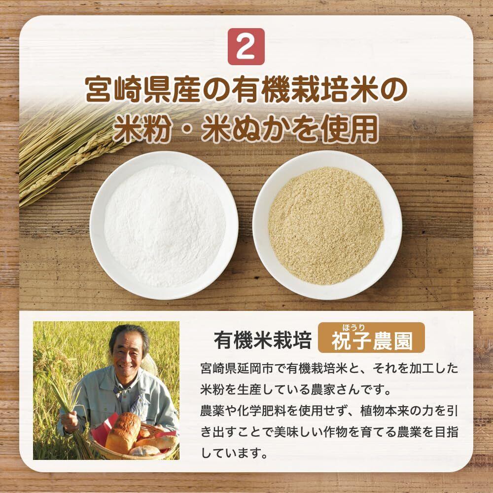 使用している原料は以下の通りです。 米粉(宮崎県産)、きび糖、米油、アーモンドパウダー、米ぬか