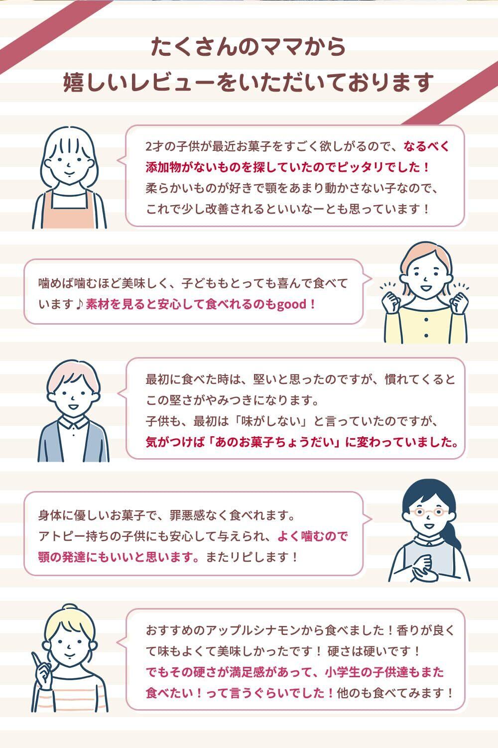 白砂糖不使用で甘さ控えめの低カロリーでヘルシーなスナックのため健康やダイエット菓子としても食べていただけます。また10時、3時のおやつ、夜のおつまみとしてもおすすめです。