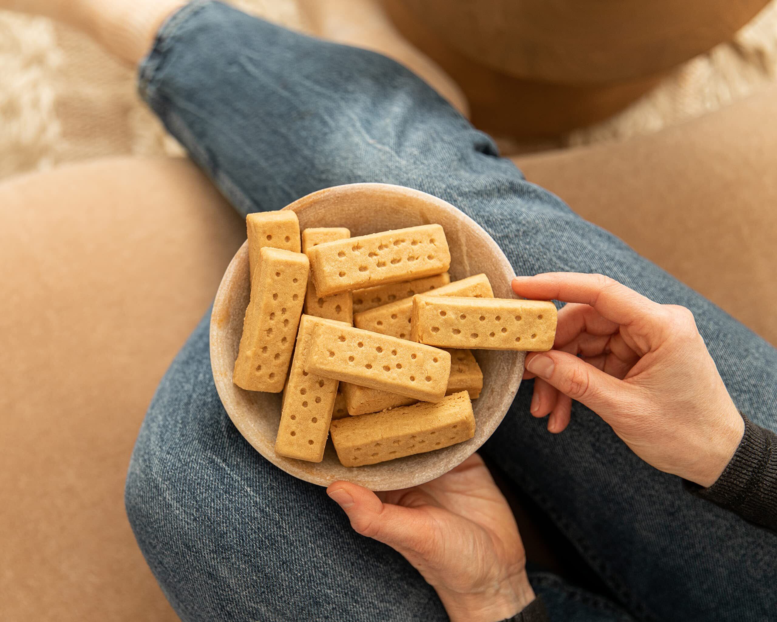 コンセプトは「食べやすい」、「携帯しやすい」、「食べ過ぎない」、「保存しやすい」、等。ショートブレッドフィンガー20gが6袋入っています。