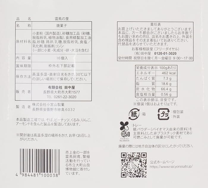 雷鳥の里16枚入 欧風焼き菓子 ウエハース 田中屋 信州長野のお菓子 (x1)