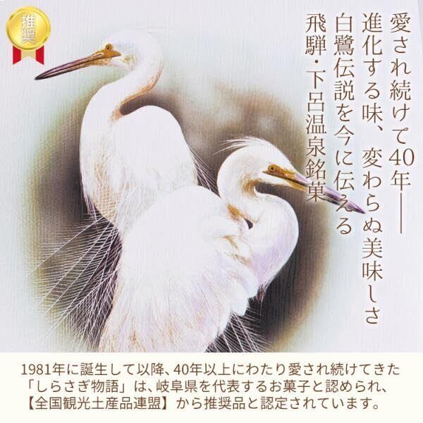 「『飛騨銘菓 しらさぎ物語』は、美しい自然に恵まれた岐阜の名産です。ひと口サイズの20個入りパックで、手軽に味わえるお土産として最適です。甘さ控えめで、しっかりとした食感が特徴のこのお菓子は、誰にでも愛される素朴な風味が魅力です!」