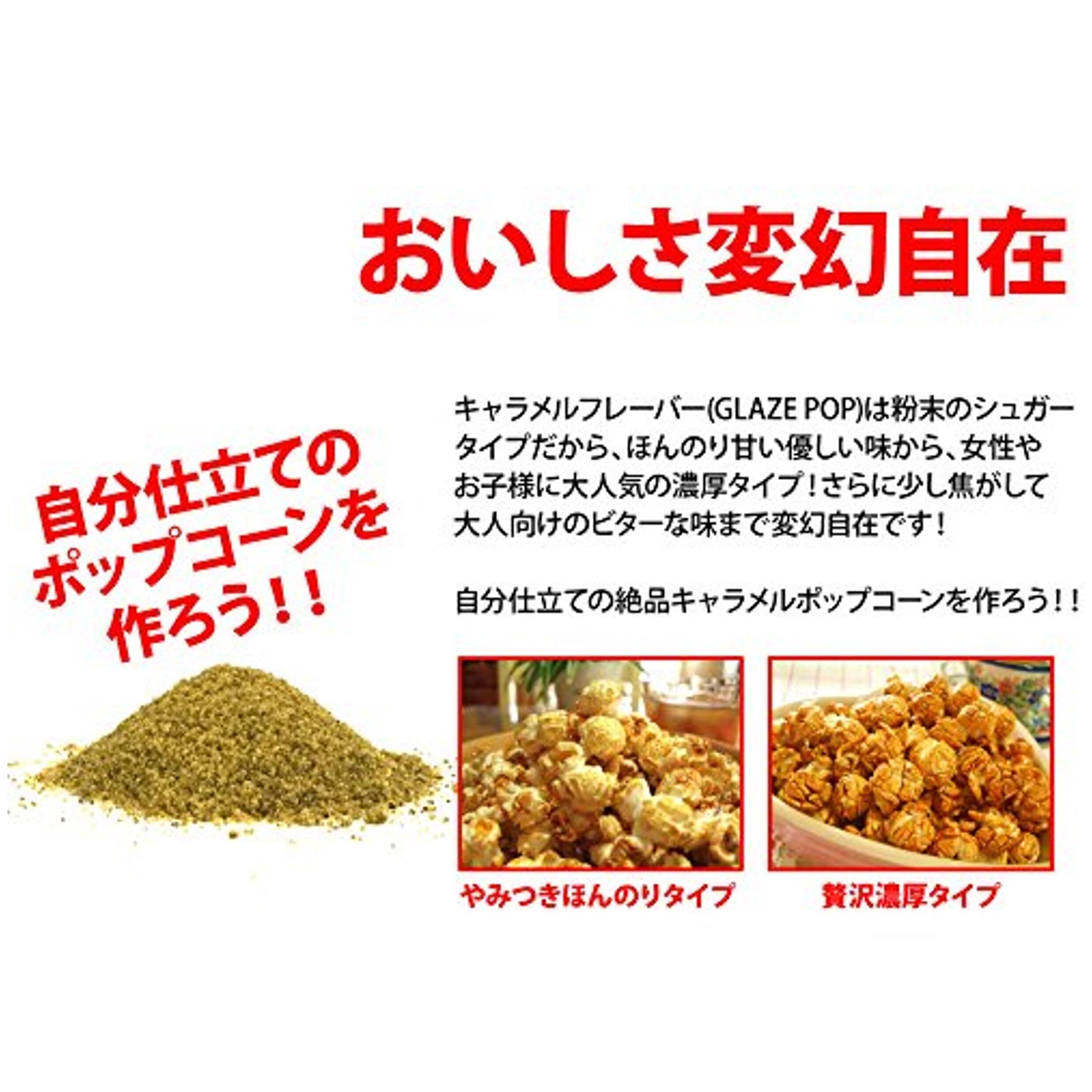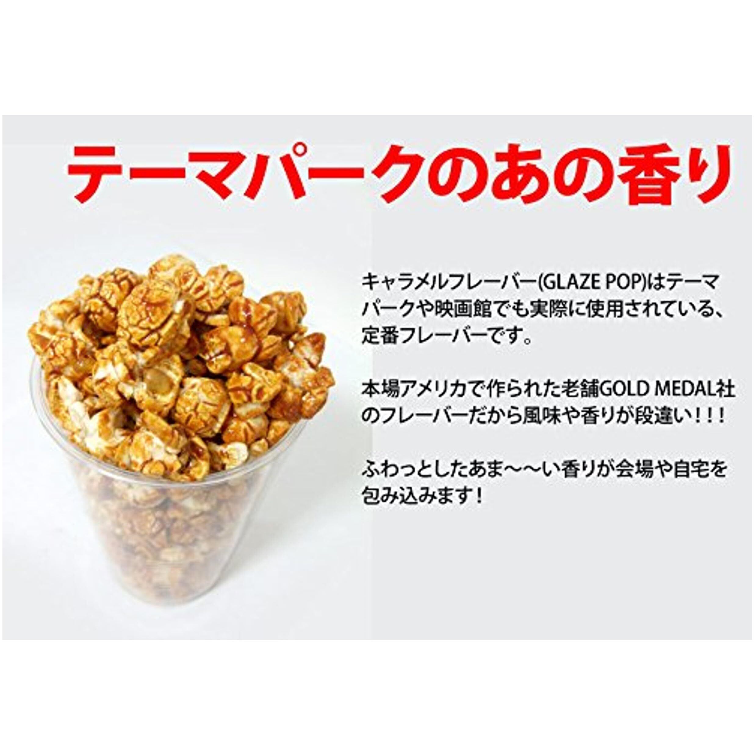 「このキャラメルグレイズは、簡単にポップコーンにかけることができ、手軽にその場で香ばしいおやつを作ることができます。豊かな甘さがクセになるこのグレイズは、家族や友人とのシェアにも最適です。映画鑑賞やお友達との集まりに、ぜひお持ち込みください!」