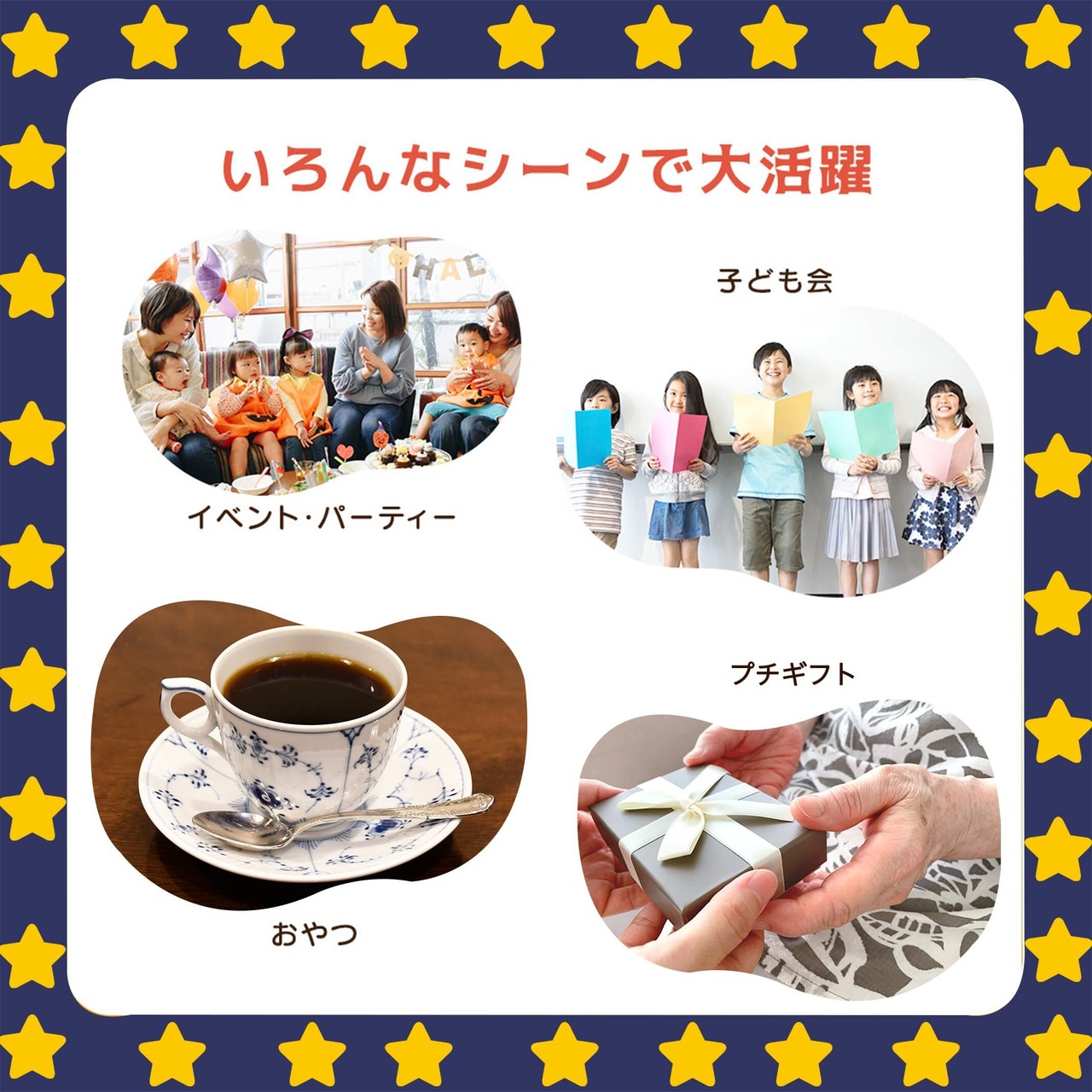 「七夕パーティーの飾りやおやつとして、またはお祝いのギフトにもピッタリ!華やかな星の形が、イベントを一層盛り上げます。特別な日をさらに特別に演出してくれること間違いなしです。お子様から大人まで、幅広くお楽しみいただけるお菓子です!」