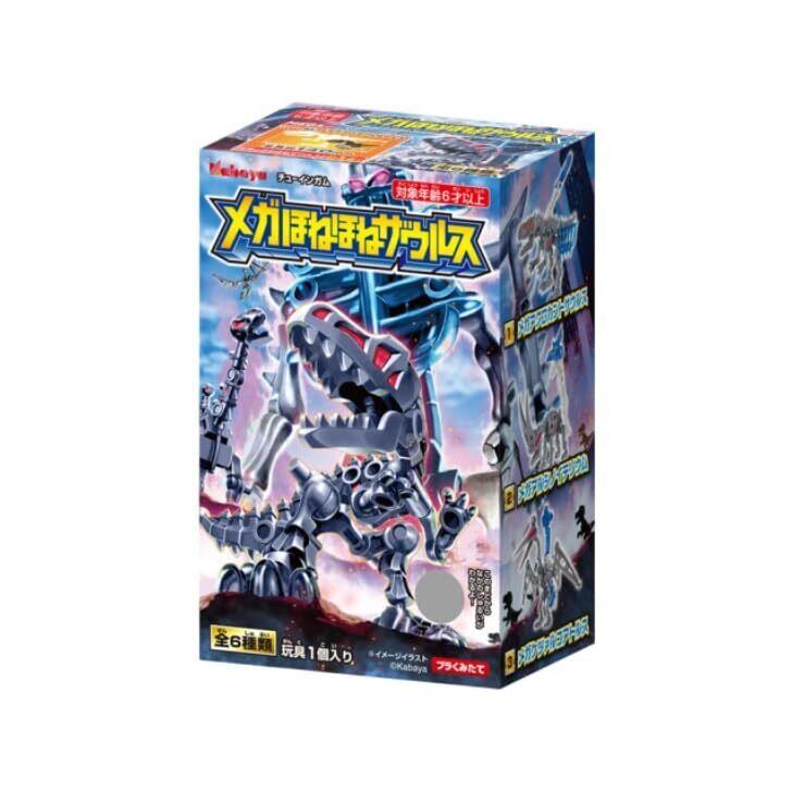 恐竜等のほねをモチーフにしたプラキット。 ロングセラーのカバヤオリジナル玩具菓子のシリーズ商品。 定番商品の約2倍の大きさ(全長約140mm)を誇る、「メガ」ほねほねザウルスです。