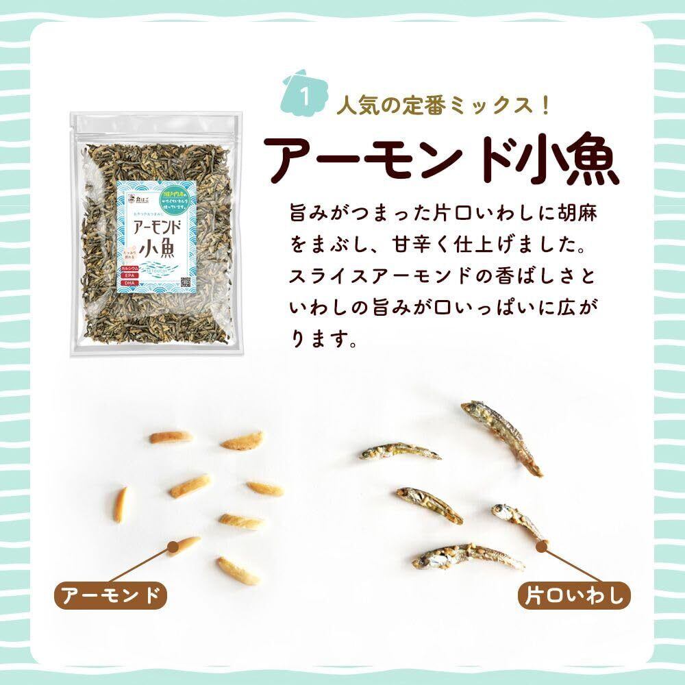 「『アーモンド小魚』は、厳選された素材を使用し、品質にもこだわっています。特に、瀬戸内産のいりこを使用することで、より風味豊かで栄養価の高い商品に仕上げられています。健康を意識したい方にも安心してお召し上がりいただける高品質なアイテムです。」