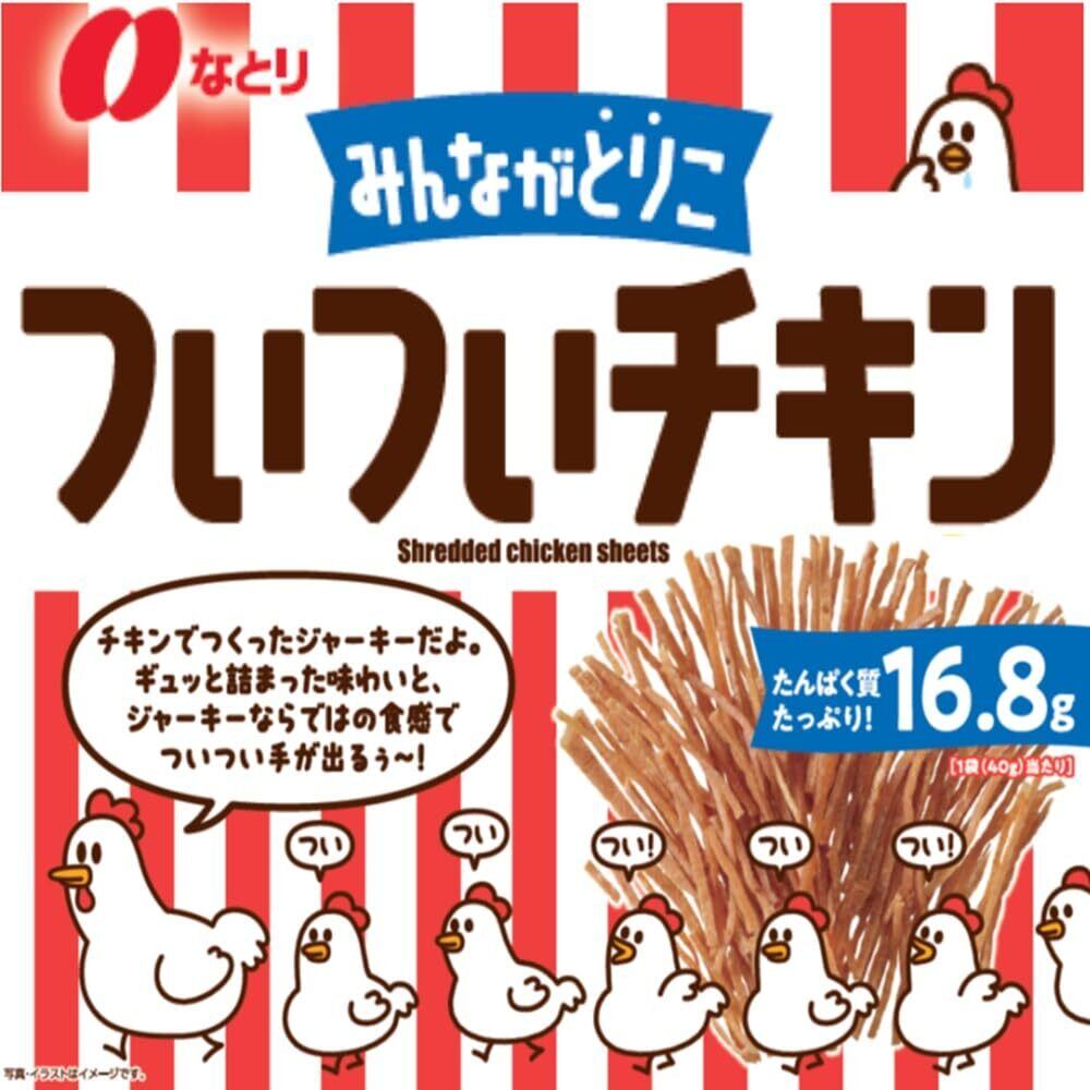 「『なとり ついついチキン 40g×5袋』は、鶏肉の旨味を生かした風味豊かなスナックです!気軽にパリパリっと楽しめるこのおやつは、サクサクとした食感がクセになる逸品。ちょっと小腹が空いた時や、リラックスタイムのお供にぴったりで、どなたでも美味しくお召し上がりいただけます!」