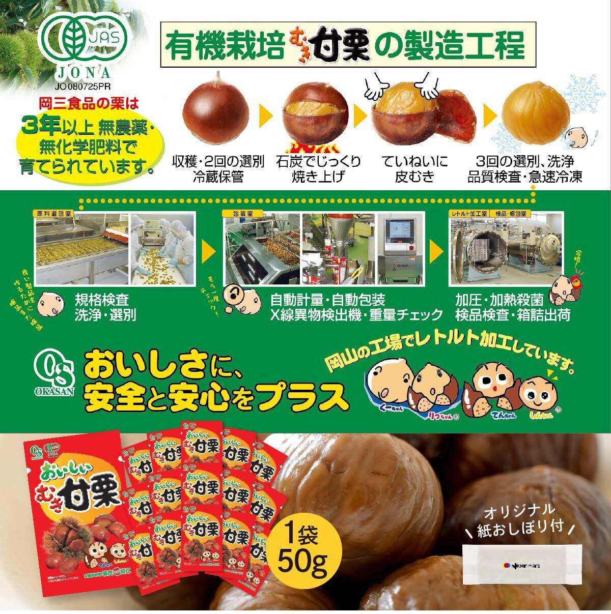 おいしいむき甘栗(平袋) 50g✕15袋 有機栽培栗・無農薬・無添加のむきぐり オーガニック天津甘栗 有機JAS認証 国内加工 個包装 岡三食品