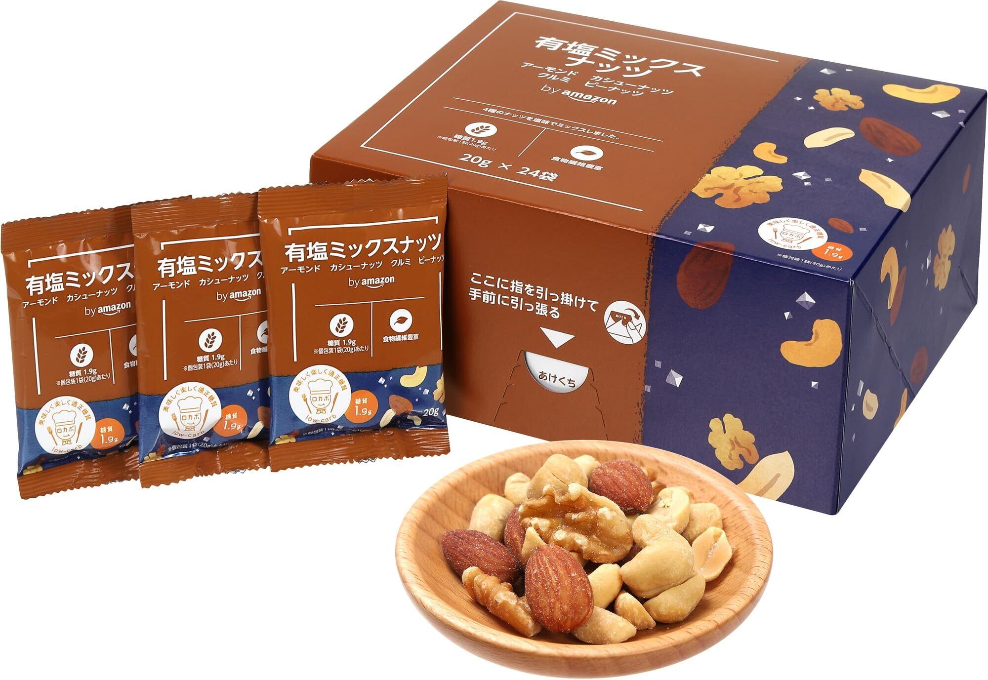 「『by 有塩ミックスナッツ 24P 個包装 20グラム』は、厳選されたナッツをバランス良くミックスし、絶妙な塩加減で仕上げました。サクッとした食感と風味豊かな味わいが特徴のこのナッツは、毎日のスナックや仕事のお供にぴったりです!個包装なので、いつでもどこでも手軽に楽しめるのも嬉しいポイントです。」