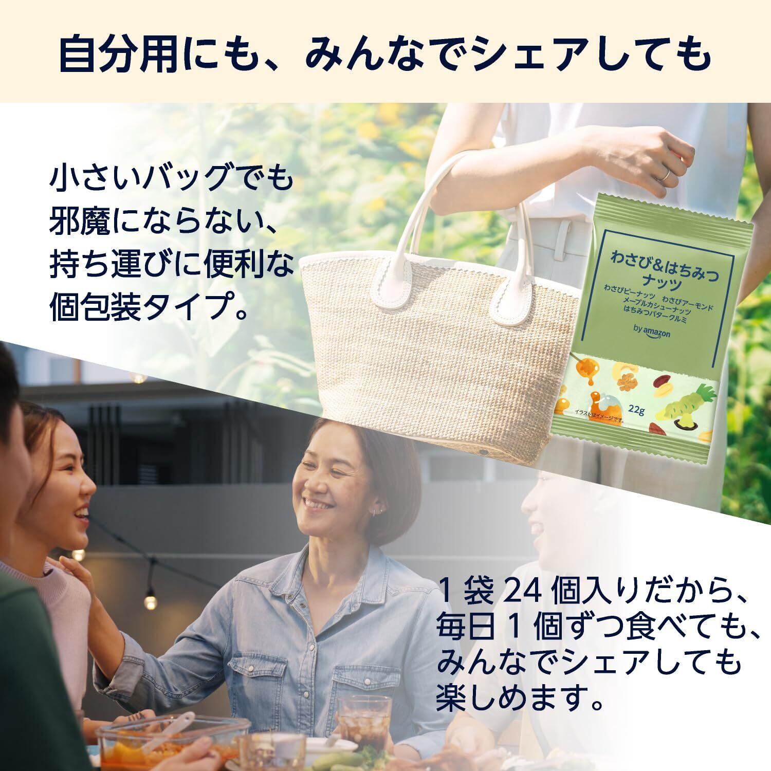 「『by わさび&はちみつナッツ』は、個包装された24パック入りで、いつでも新鮮な状態で楽しめます。お出かけやオフィスでの間食にもぴったりです。ちょっとした贅沢を楽しみたい時に手軽に取り入れられる一品です。」