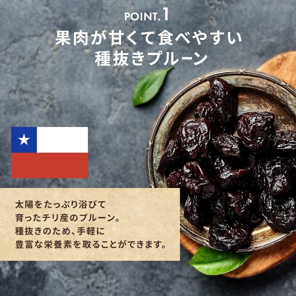 太陽をたっぷり浴びて育ったチリ産のプルーン。種抜きのため、⼿軽に豊富な栄養素を取ることができます。