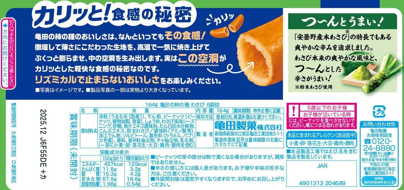 亀田製菓 亀田の柿の種 わさび6袋詰 164g×12袋