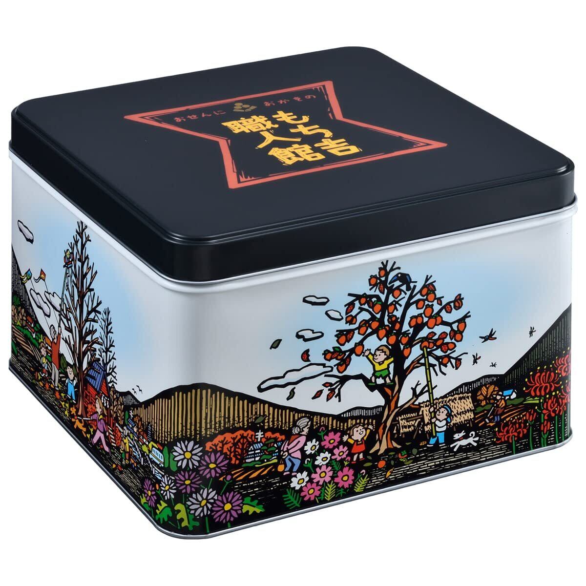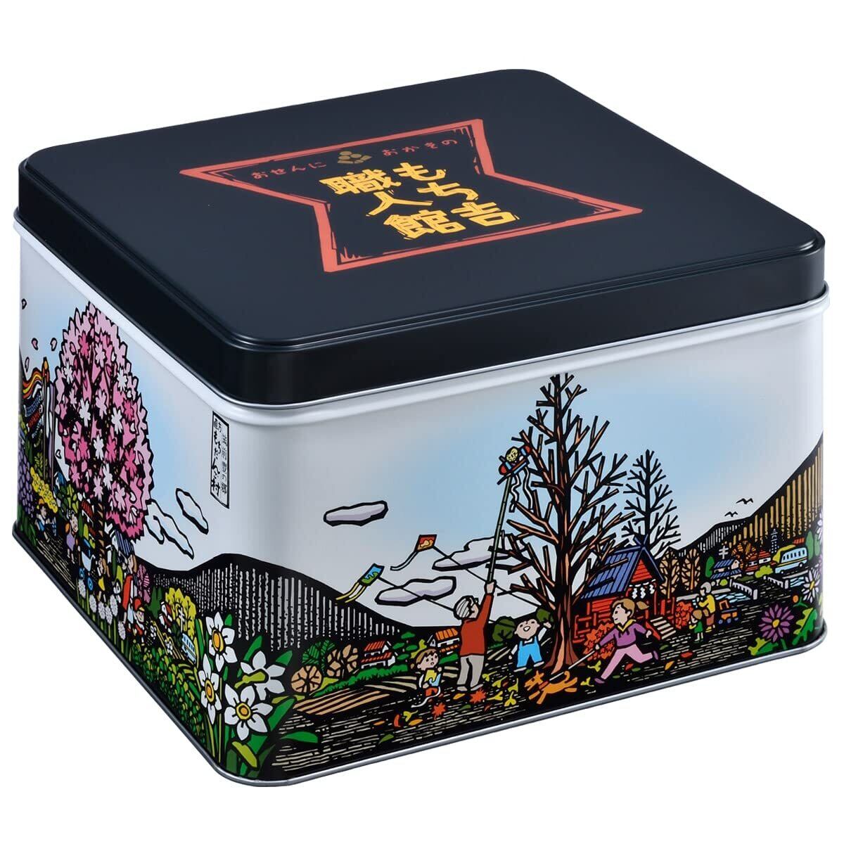 職人おすすめの味を種類豊富に詰め合せました。 職人でしか作れない味、食べやすいサイズの「せんべい」、「あられ」が、 7種類入っています。 おいしさを追求した、もち吉の職人たちの技を多彩な味で堪能できる自信のひと缶です。 色彩も鮮やかに日本の懐かしい四季の風景を前面に描いた“美術館”も、 食べる人の気持ちを和ませます。 日本古来の原風景、懐かしさとともに、おいしさを味わっていただける人気の贈り物です。