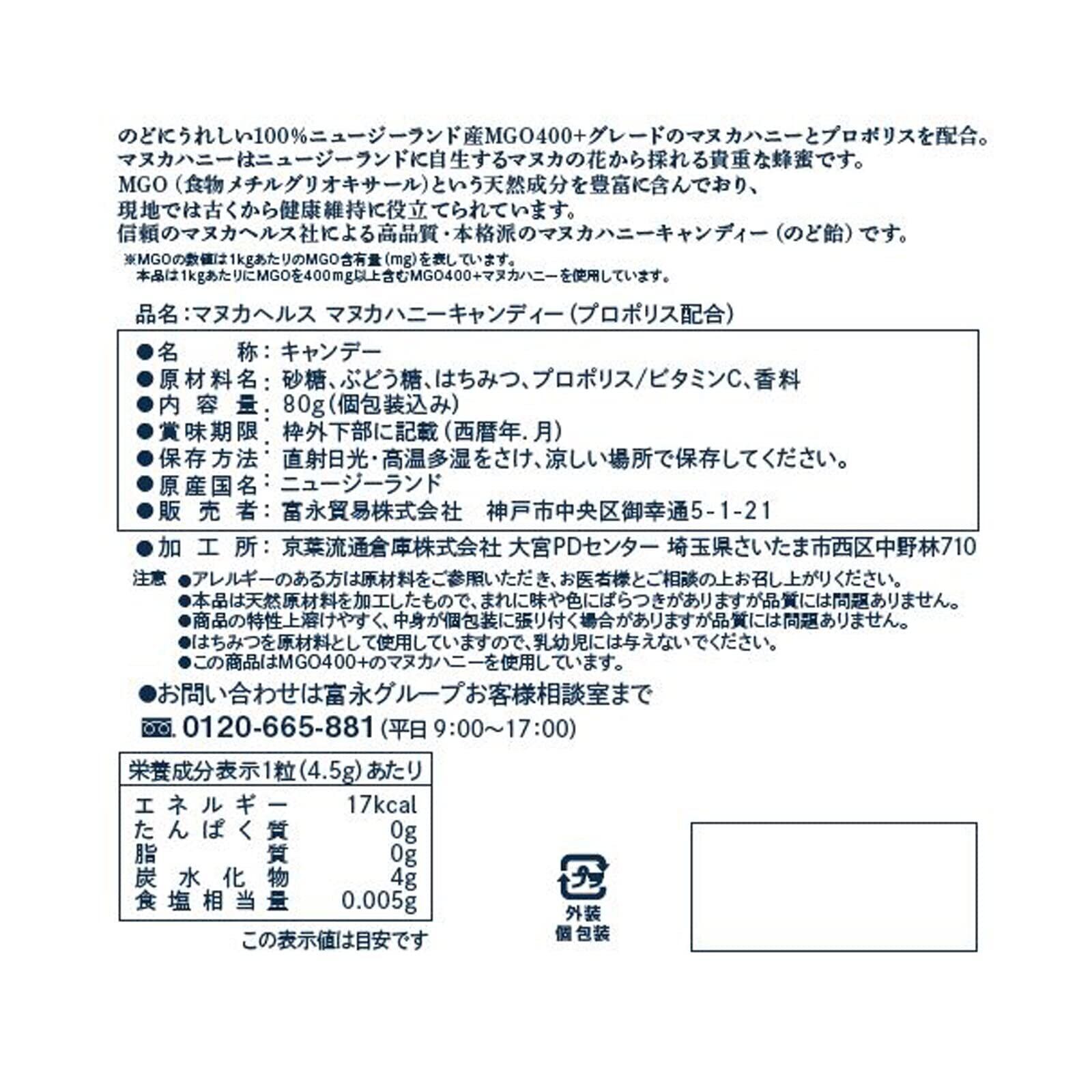 マヌカヘルス マヌカハニー キャンディー ( プロポリス 配合 ) 80g [ 正規品 ニュージーランド産 MGO400+ 個包装 チャック付き ]