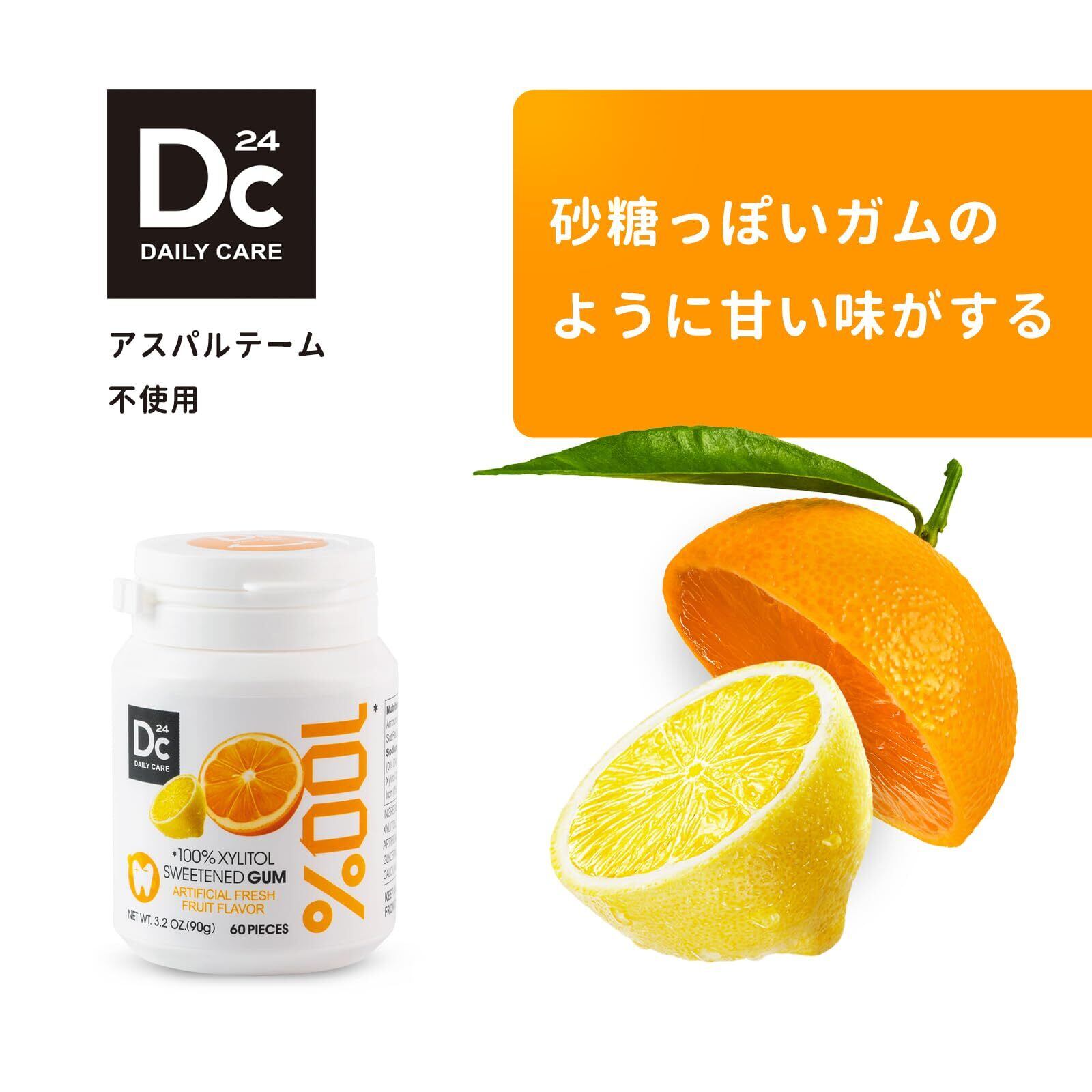 DC24 DAILY CARE キシリトールガム シュガーフリー 天然フレーバー アスパルテーム不使用 60粒×2 (ボトル×2個, フルーツフレーバー)