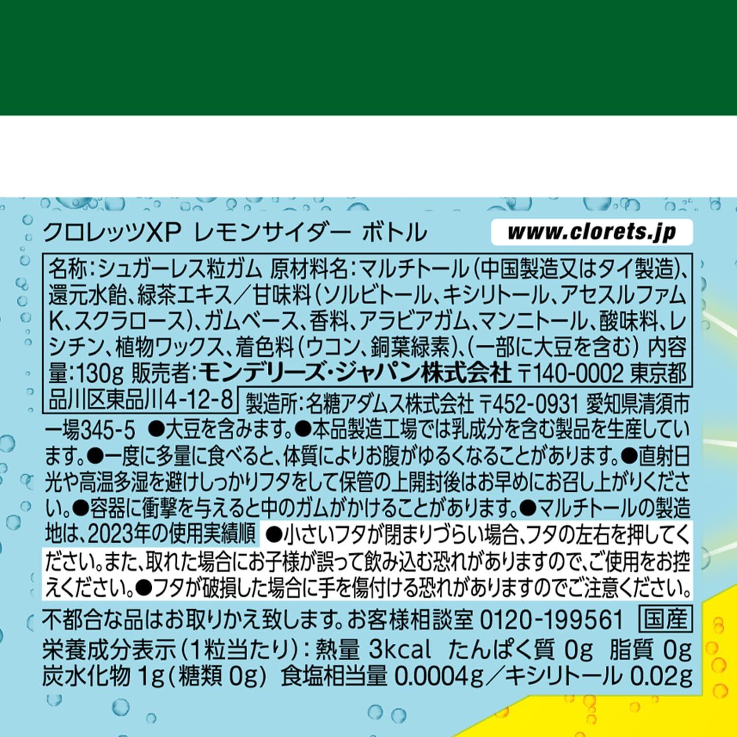 お客様サポート:ご不明な点やご質問がございましたら、お気軽にお問い合わせください。『モンデリーズ クロレッツXPレモンサイダーボトル 130g×6個』で、爽やかな口内環境をお楽しみください!