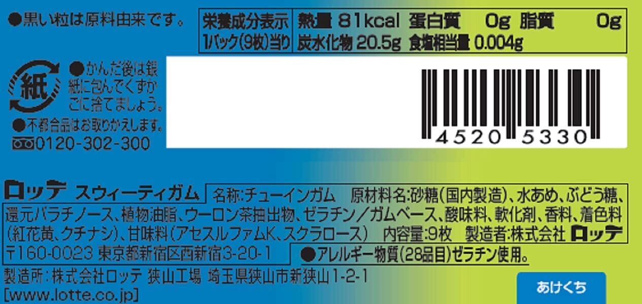 お客様サポート:ご不明な点やご質問がございましたら、お気軽にお問い合わせください。『ロッテ スウィーティガム 9枚 ×15個』で、楽しいおやつタイムをお過ごしください!