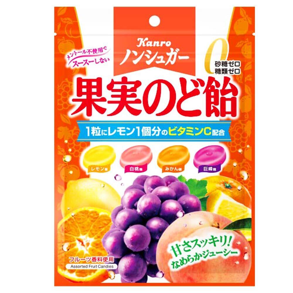「『カンロ ノンシュガー果実のど飴』は、果実の旨味をギュッと詰め込んだ、健康を気遣う方にぴったりののど飴です。砂糖不使用で、フルーツの自然な甘さが楽しめるので、気軽にお楽しみいただけます!のどの調子が気になるときや、おやつに最適な一品です。」