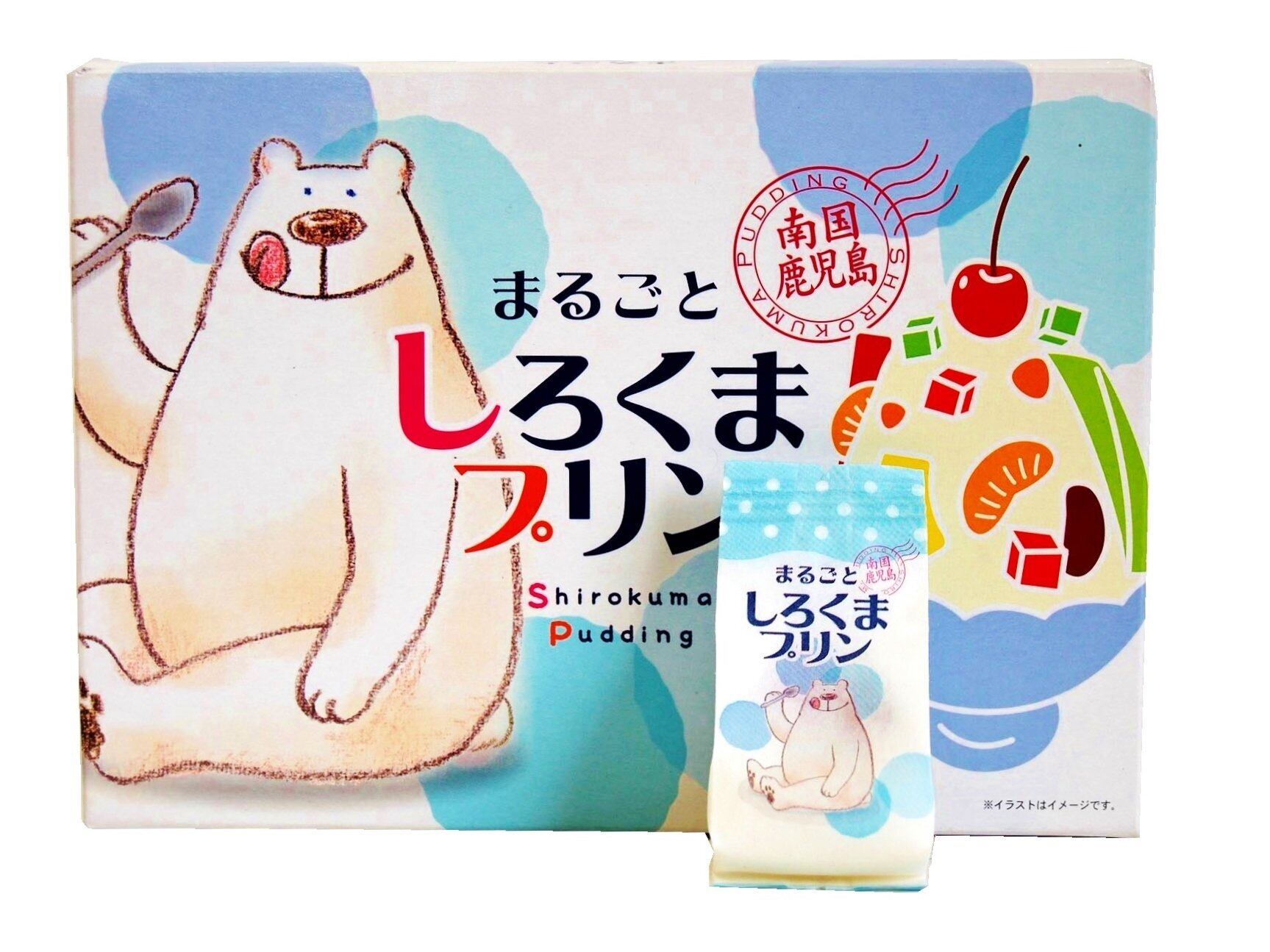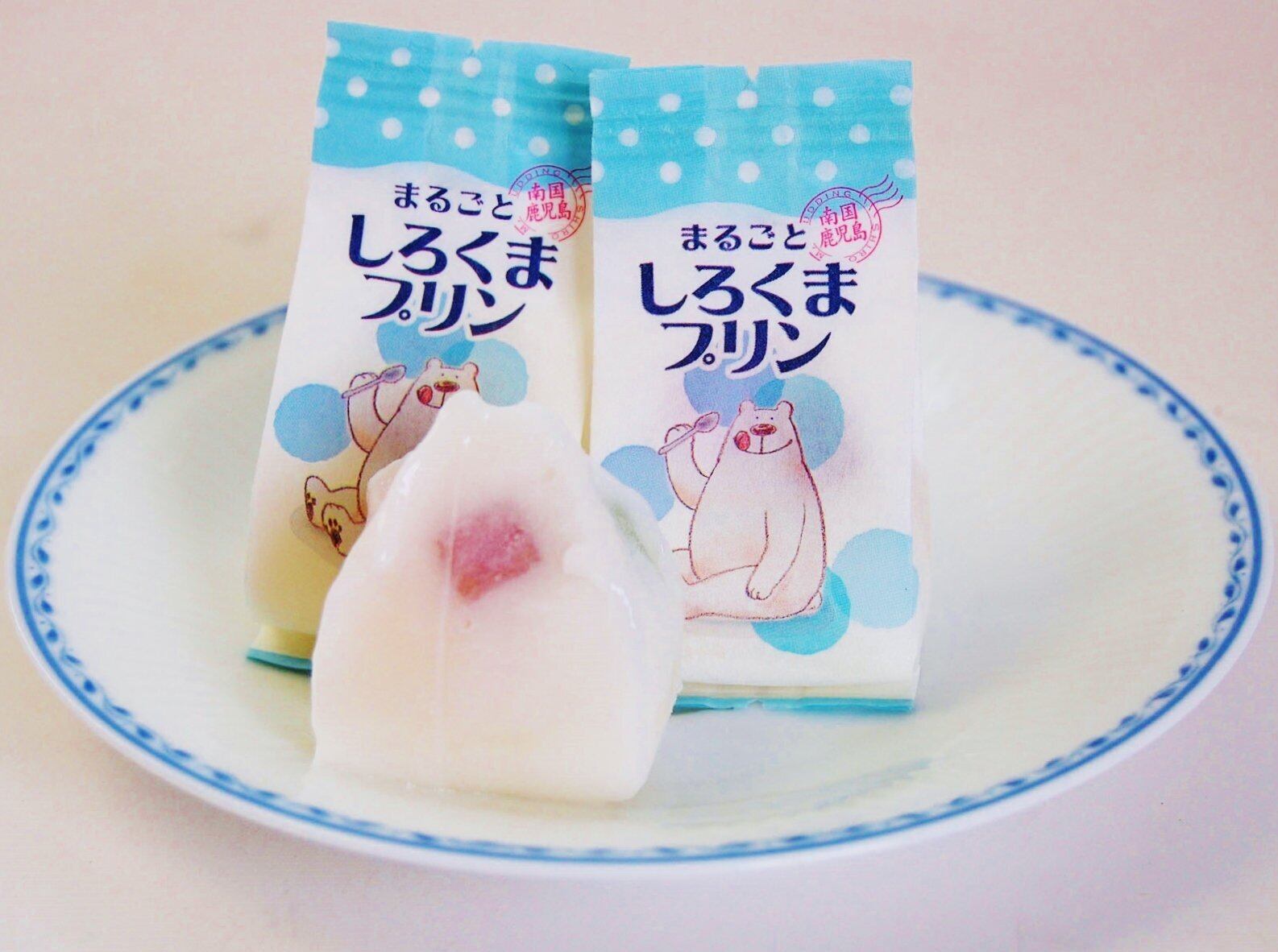 練乳ベースの白いプリンの中に、みかん・メロン・いちご・小豆の角切りゼリーを入れた「鹿児島名物しろくま」のプリンです。 世界最小と言われる「桜島小みかん」ジュースが使用されています。 冷やして食べるとさらに美味しいですよ