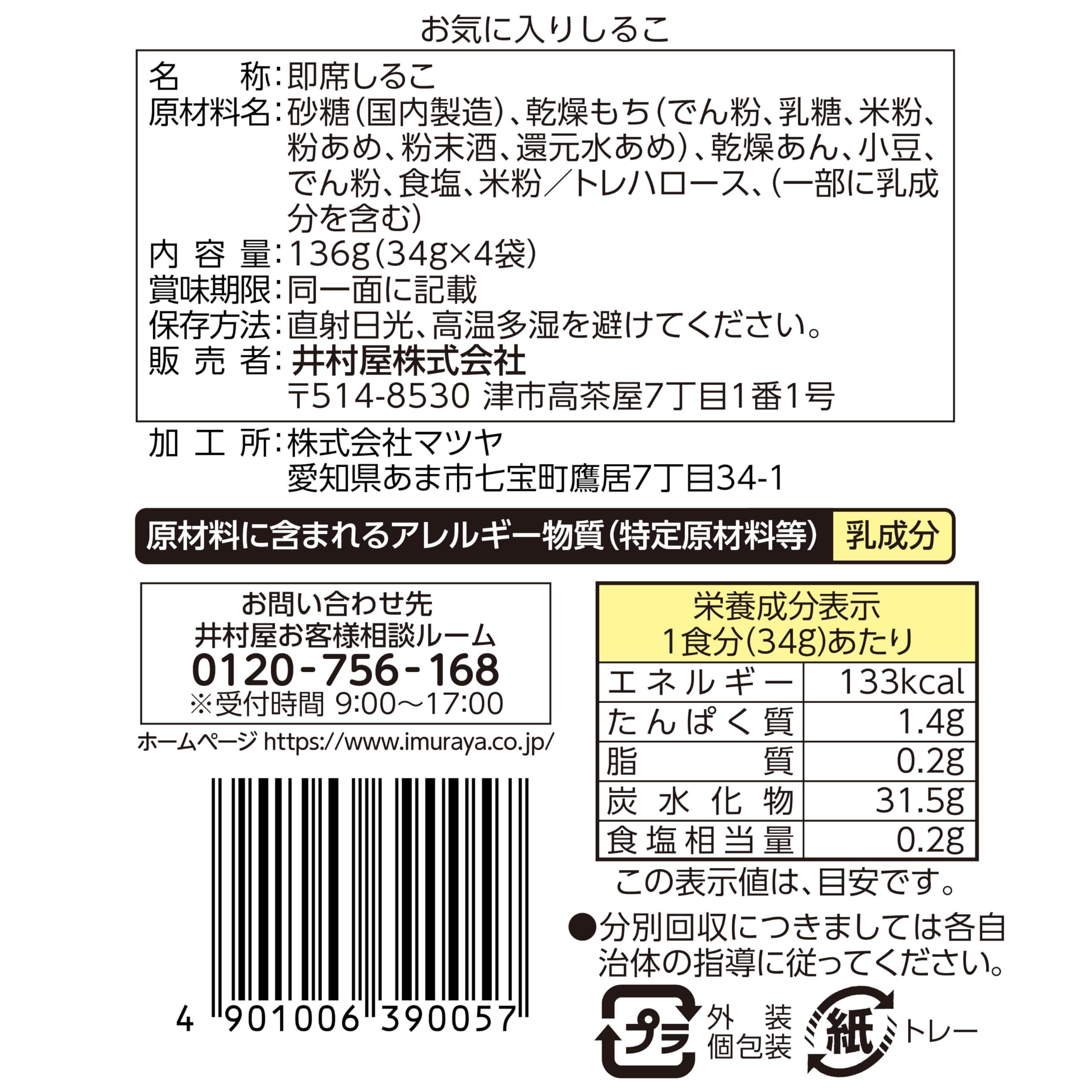 井村屋 お気に入りしるこ 136g(34g×4袋)×6袋