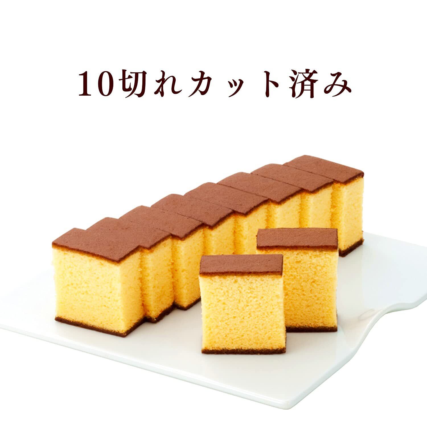 商品構成:10切カットカステラ(310g)×2本。 サイズ:1本の外箱-約27.5x7.0x7.0cm。